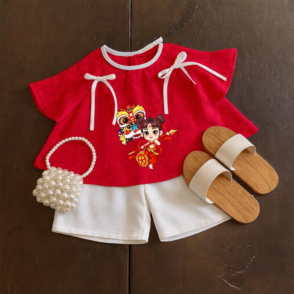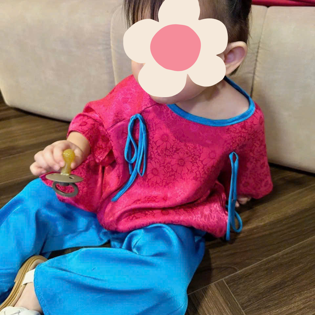Bà ba cho bé gái mặc TẾT chất gấm lụa satin, Bộ quần áo bà ba cho bé phối nơ xinh xắn dễ thương BB03 - BIATONKIDS