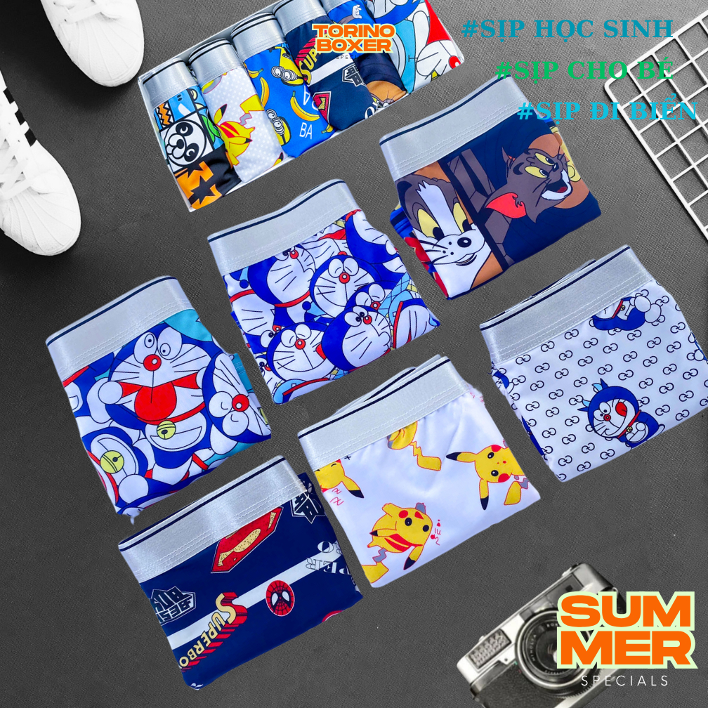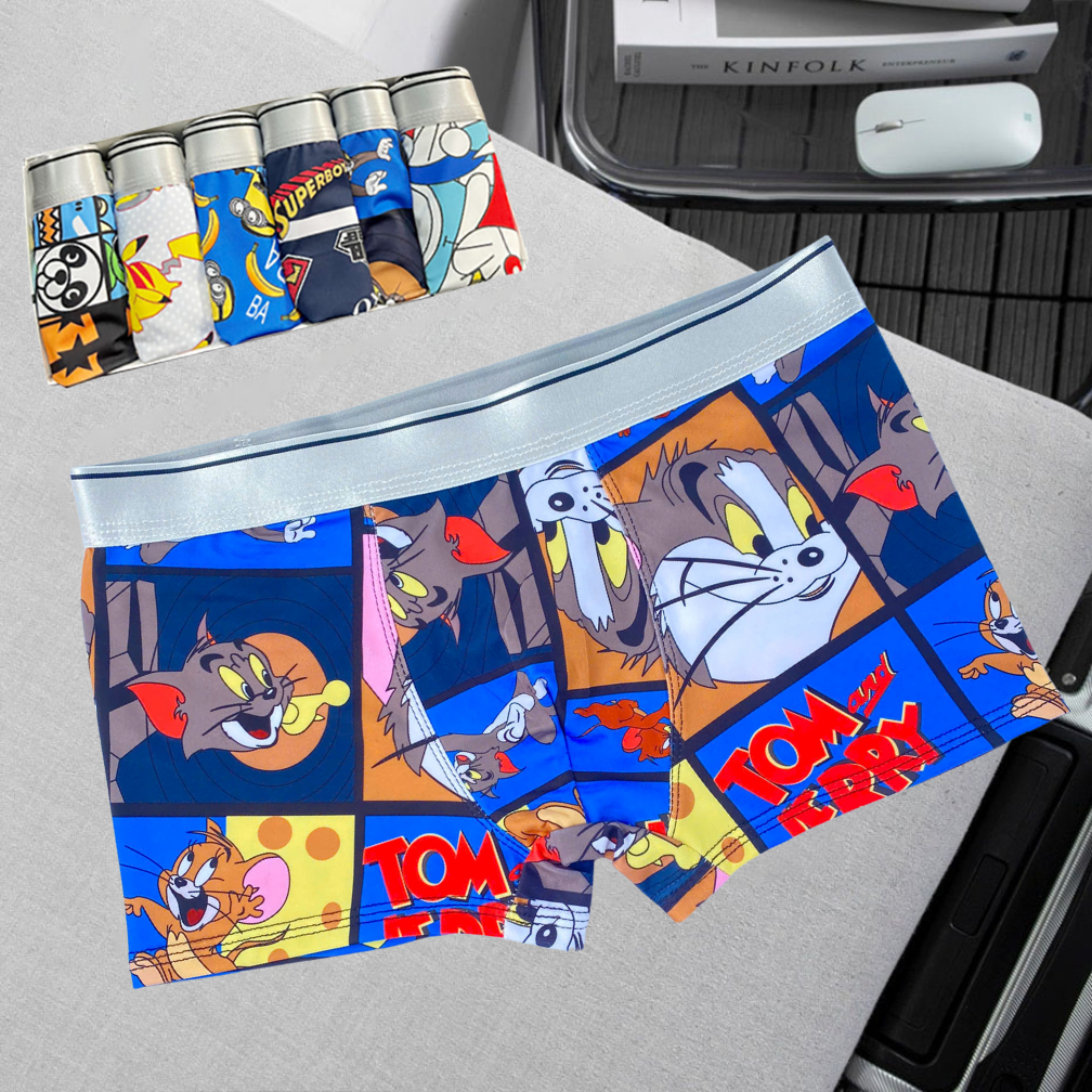 SET 4 Sịp nam hoạt hình, quần chip bé trai Size 30-65KG vải thun lạnh co dãn mềm mại mát thấm hút