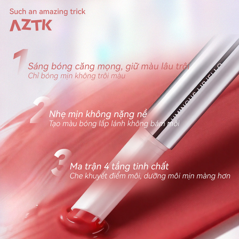 AZTK Son Thỏi Bóng Căng Bóng Mềm Môi Ẩm Mượt Tự Nhiên Màu Đẹp 1.9g