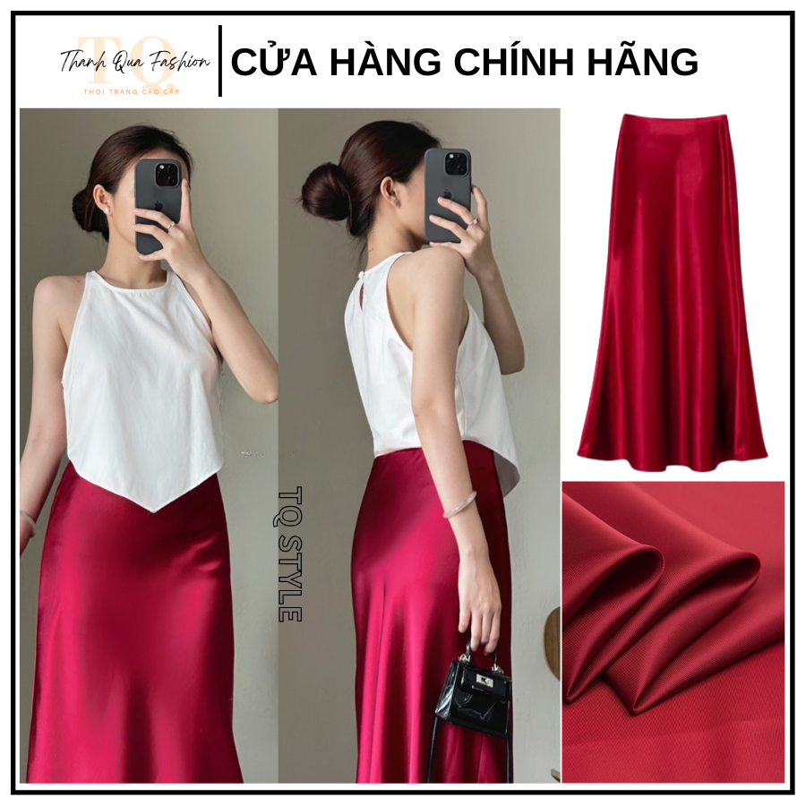 Chân Váy Lụa Tô Châu Dáng Suông Dài Chữ A Xòe Cạp Trễ Lưng Chun Bên Trong, Kiểu Dáng Midi - TQ216