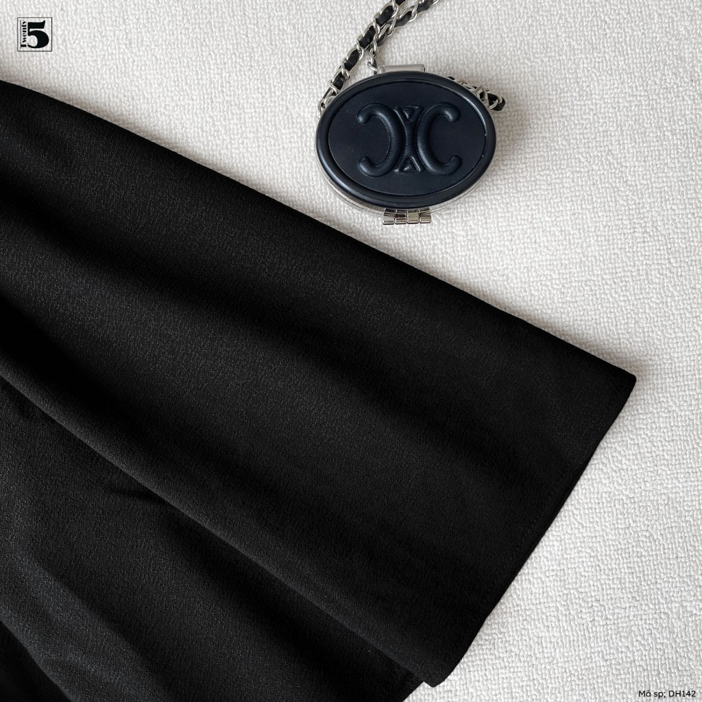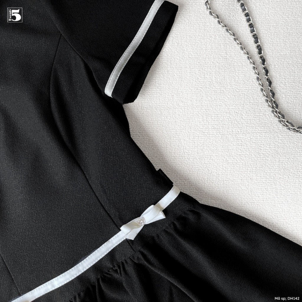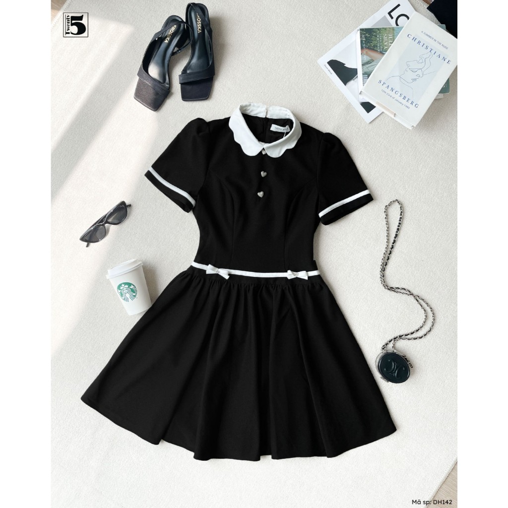 Đầm ngắn tay Twentyfive, phối cổ trắng, đai eo, chân váy xếp ly DH142