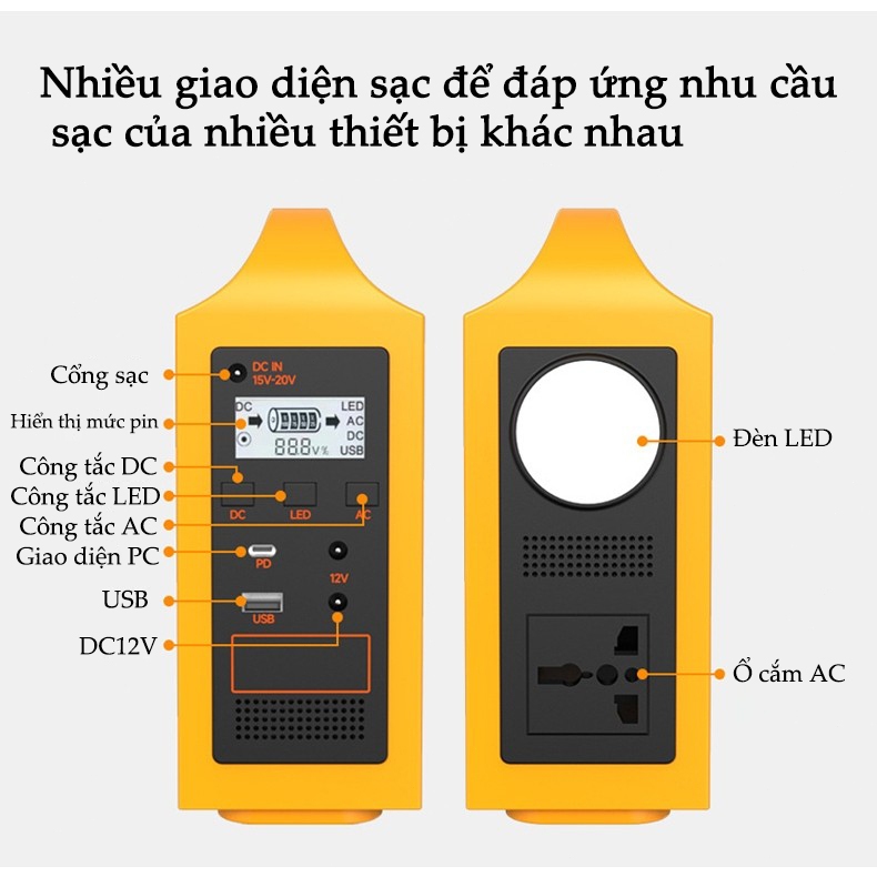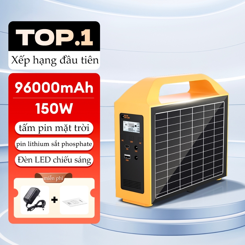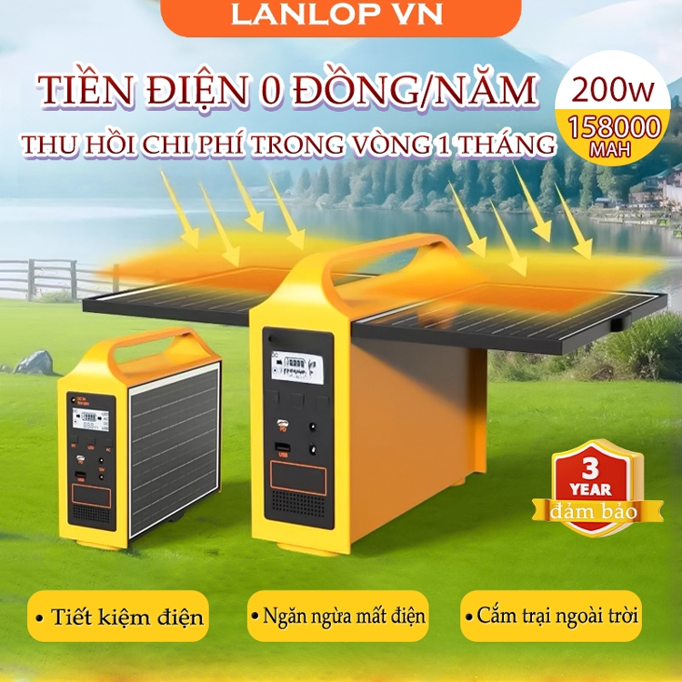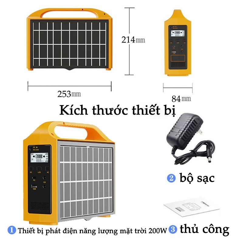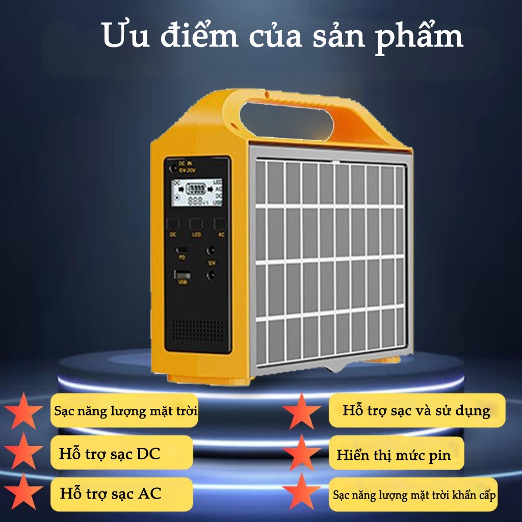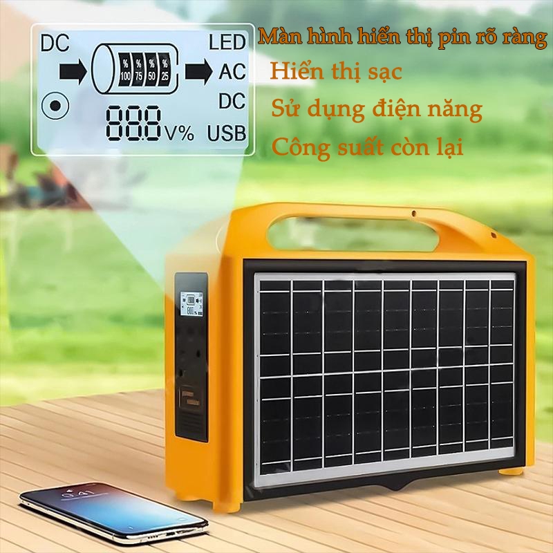 Trạm sạc năng lượng mặt trời cầm tay 220V - Nguồn điện dự phòng cầm tay cho cắm trại, máy phát điện ngoài trời
