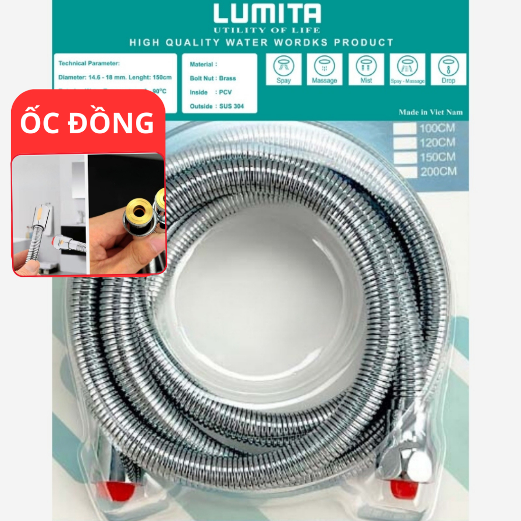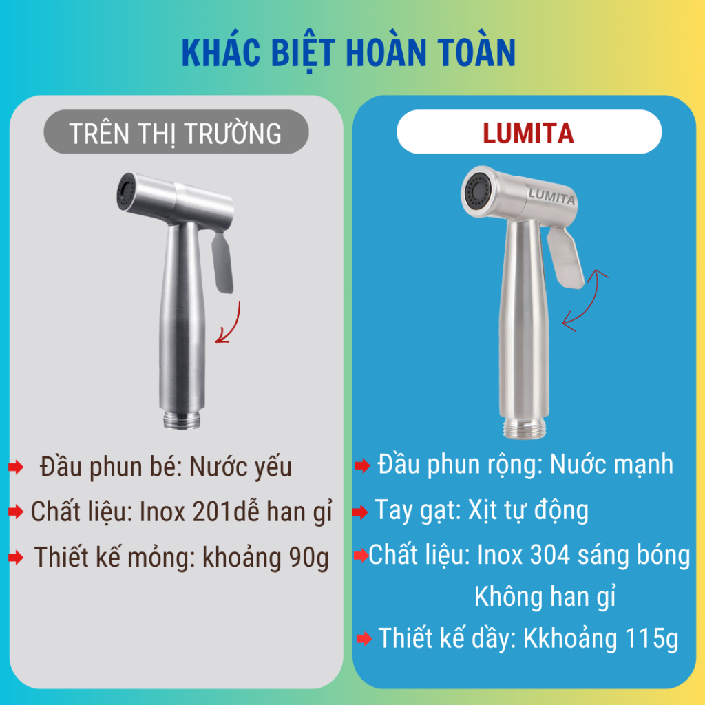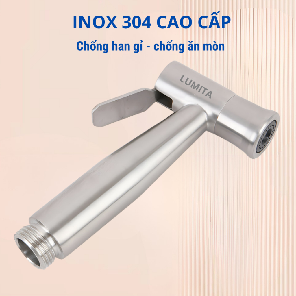 Vòi xịt toilet, xịt vệ sinh tăng áp inox 304 LUMITA PRO - Đầu phun rộng giúp tăng áp mạnh, tay gạt xịt tự động