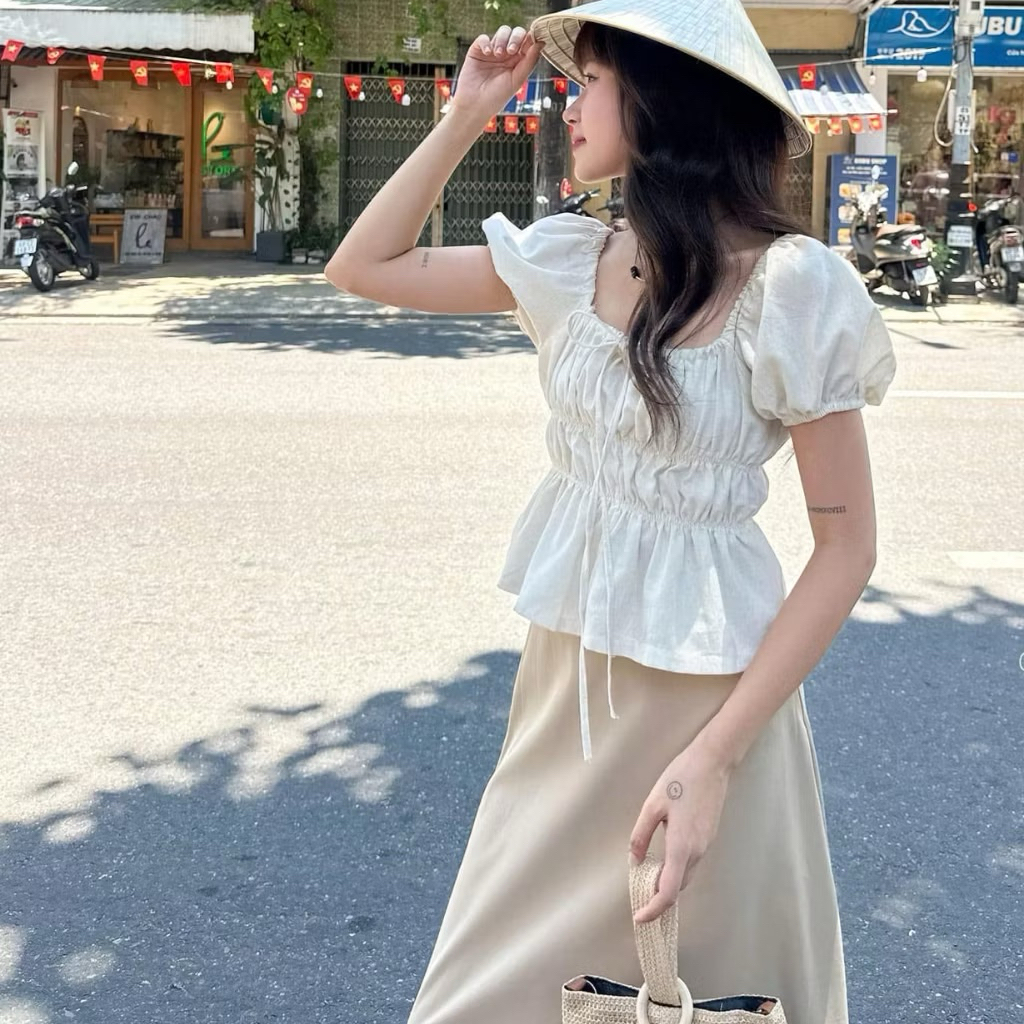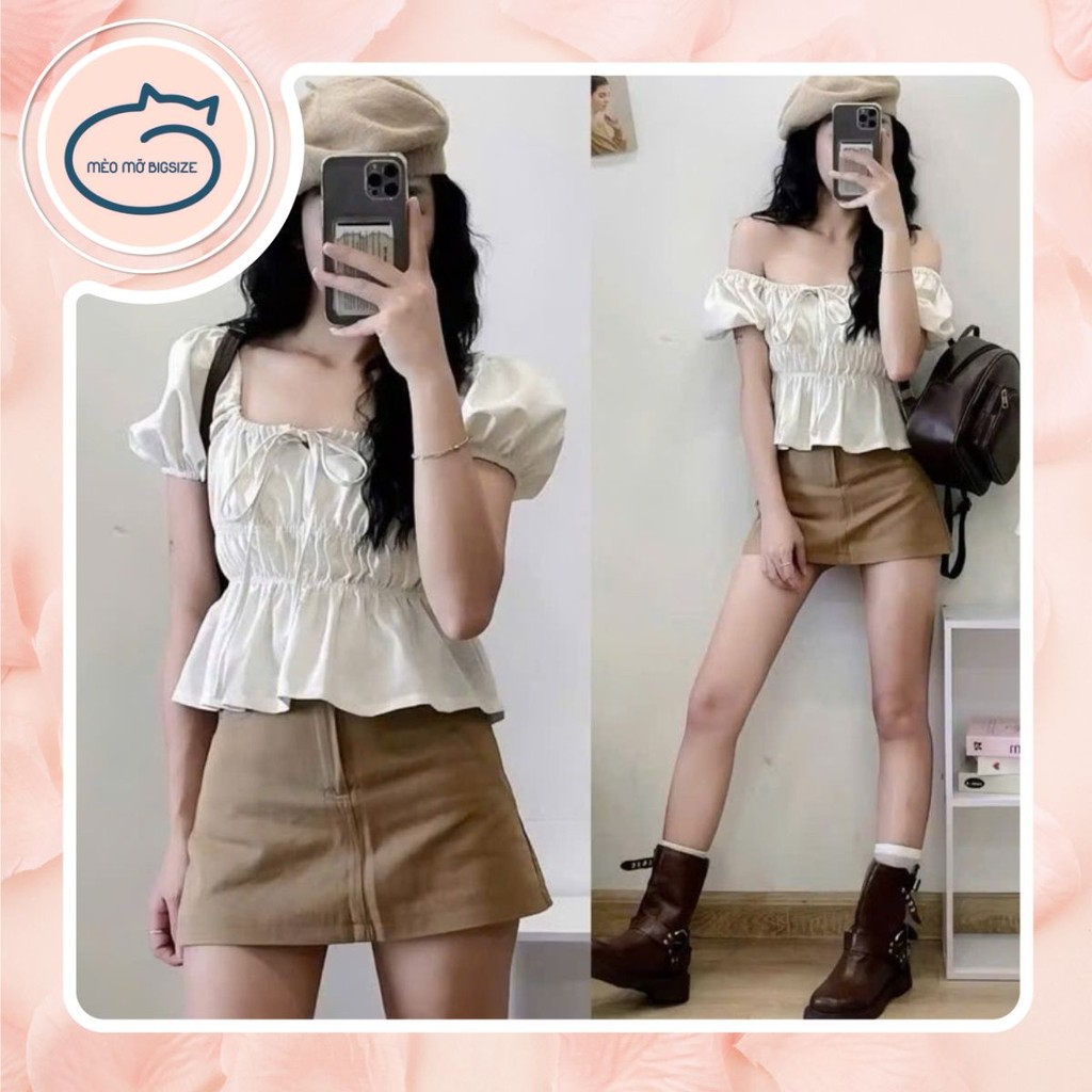 Mèo Mỡ Bigsize — Áo kiểu croptop linen tay phồng xinh yêu bigsize 58-95kg