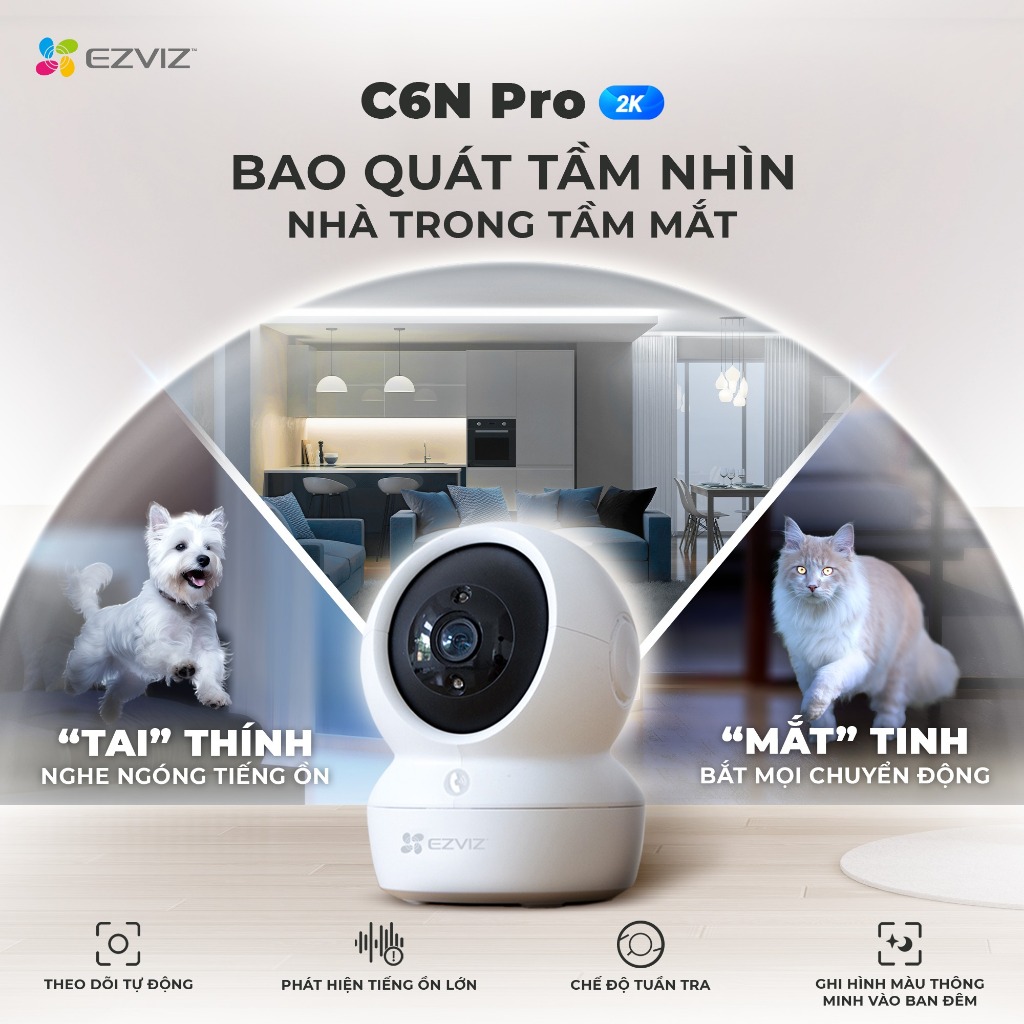Camera Trong Nhà EZVIZ C6N Pro 2K - Camera WIFI 360°- Đàm Thoại 2 Chiều - Có Màu Ban Đêm