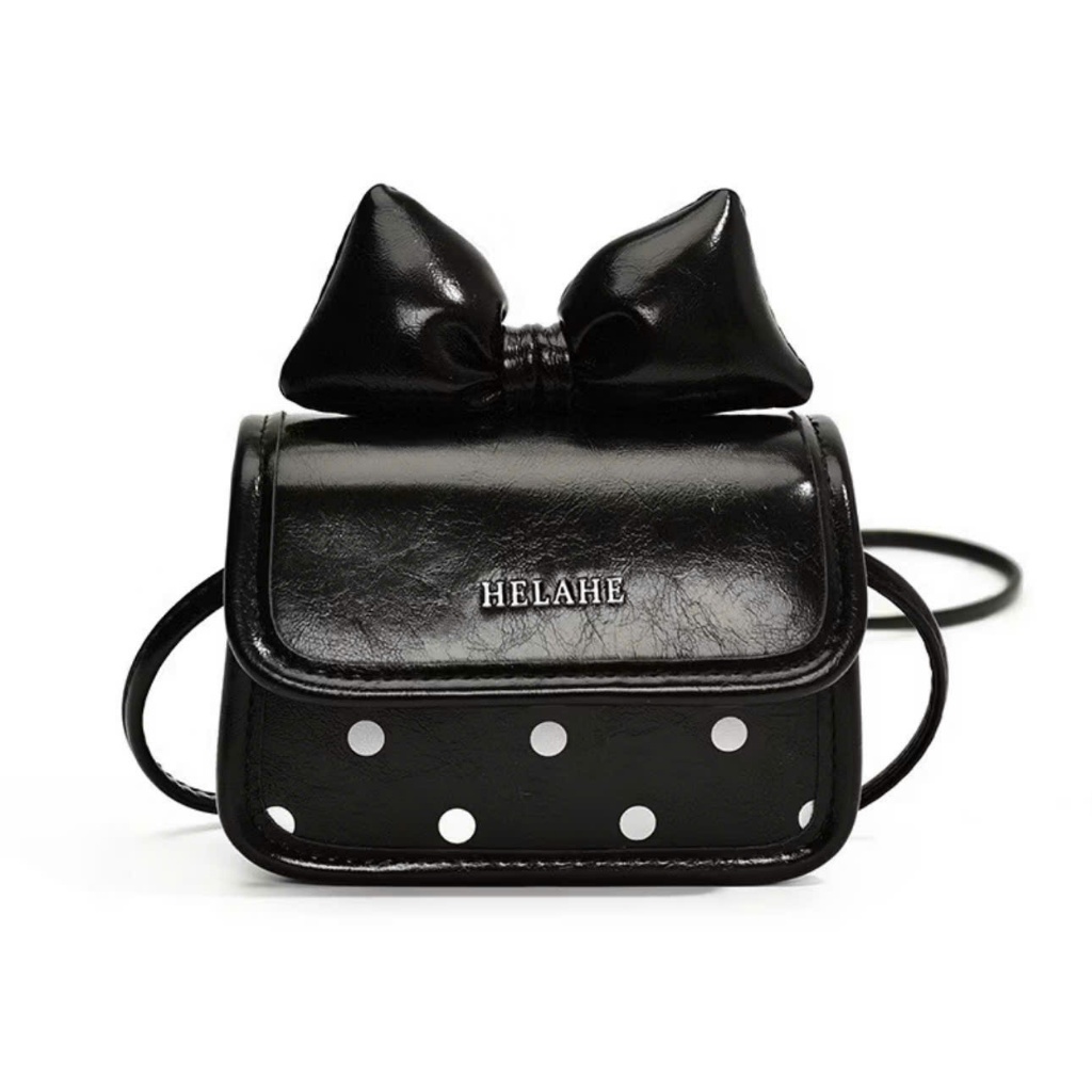 Túi mini da PU size 14cm họa tiết chấm bi phối nơ đáng yêu đeo chéo phong cách Hàn Nhật cho mẹ và bé gái - DK347