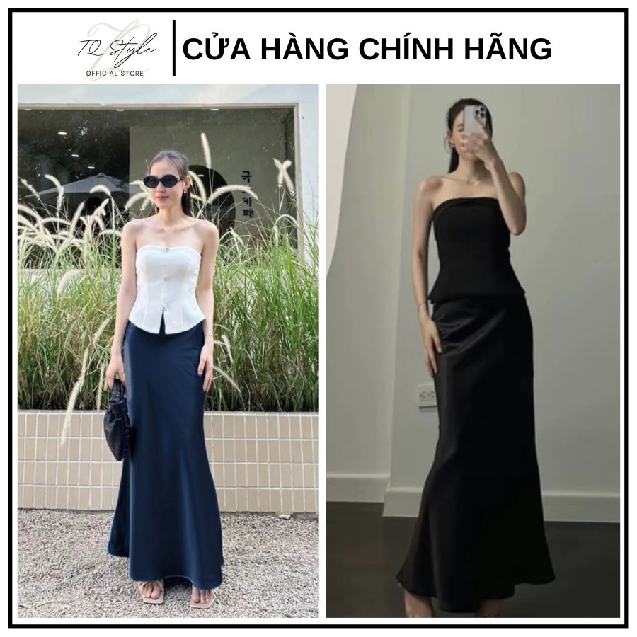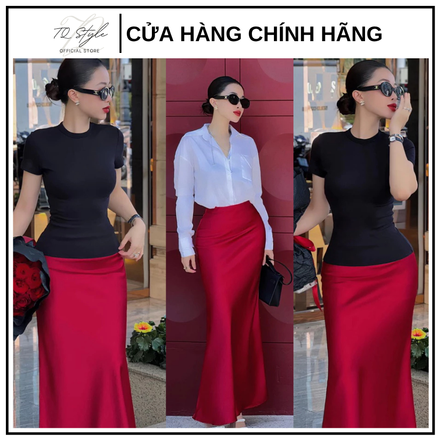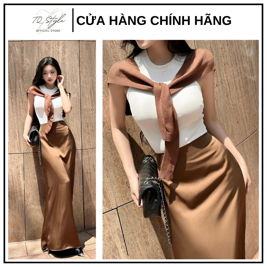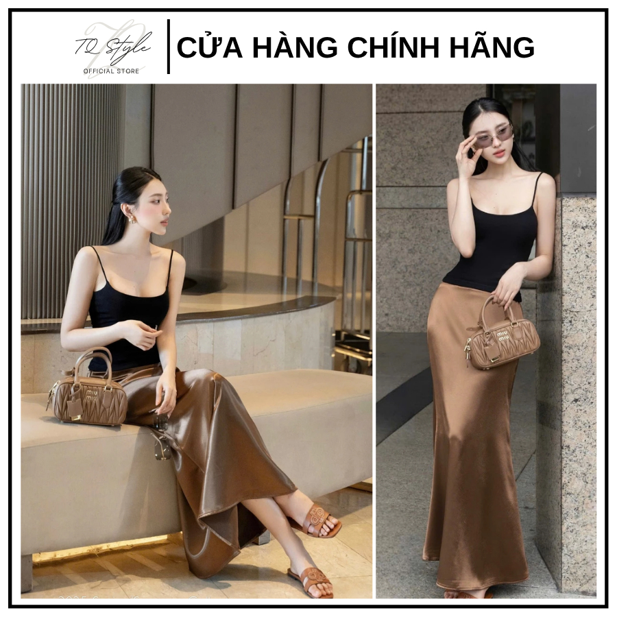 Chân Váy Lụa Midi Đuôi Cá Dáng Dài Cạp Trễ Lưng Chun Bọc Trong Chất Vải Lụa Bóng Vân Gỗ TQ STYLE 235