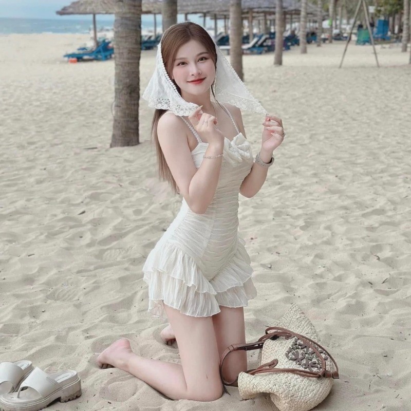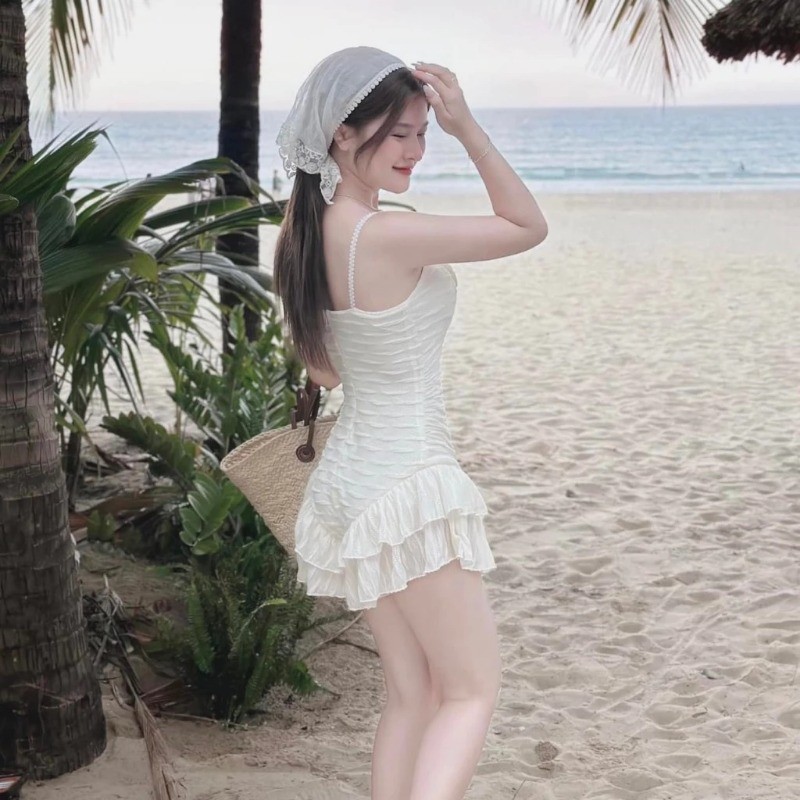 Áo tắm một mảnh bikini nhún bèo gợi cảm (miếng đệm ngực),áo tắm nơ đi biểnVáy đi biển hai dây cho nữ