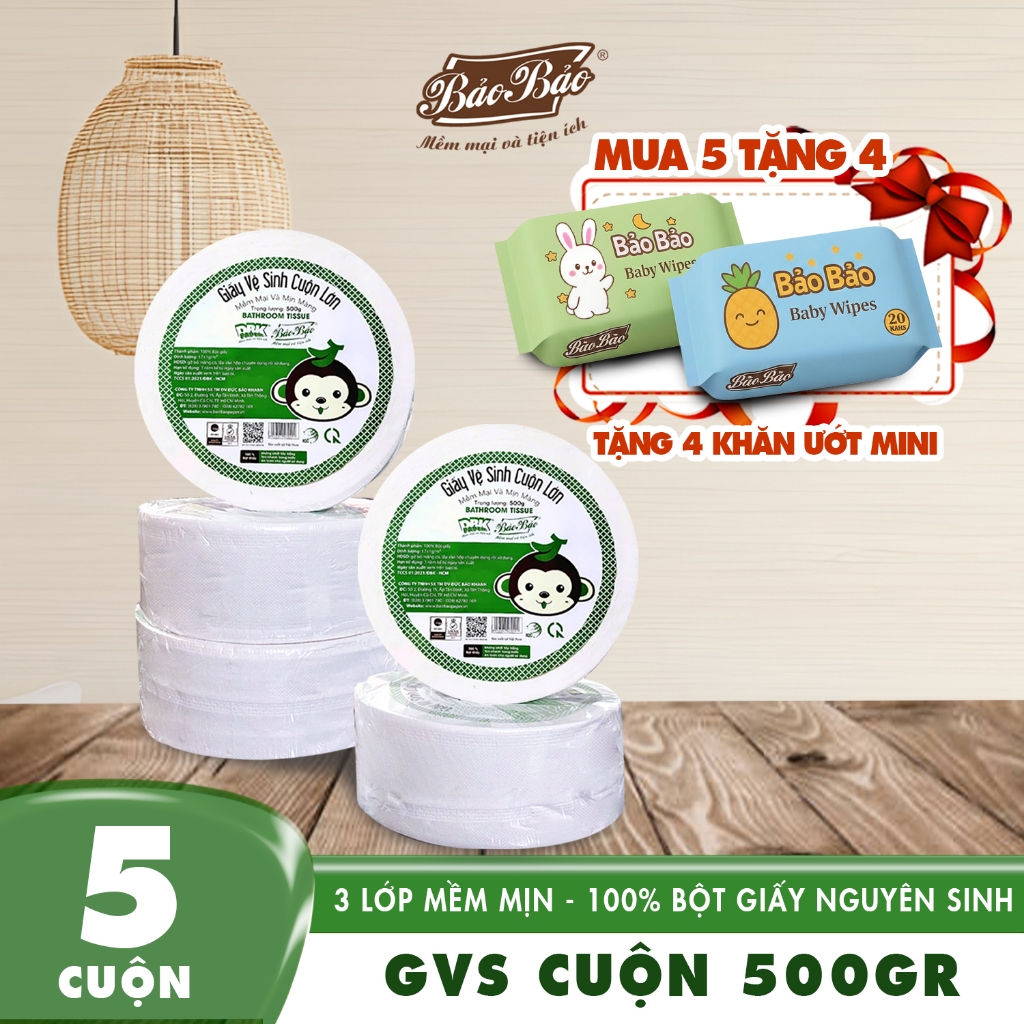 [Combo 5 Cuộn tặng 1 khăn ướt] Giấy vệ sinh công nghiệp lớn 500g Bảo Bảo- mềm mịn, tan trong nước
