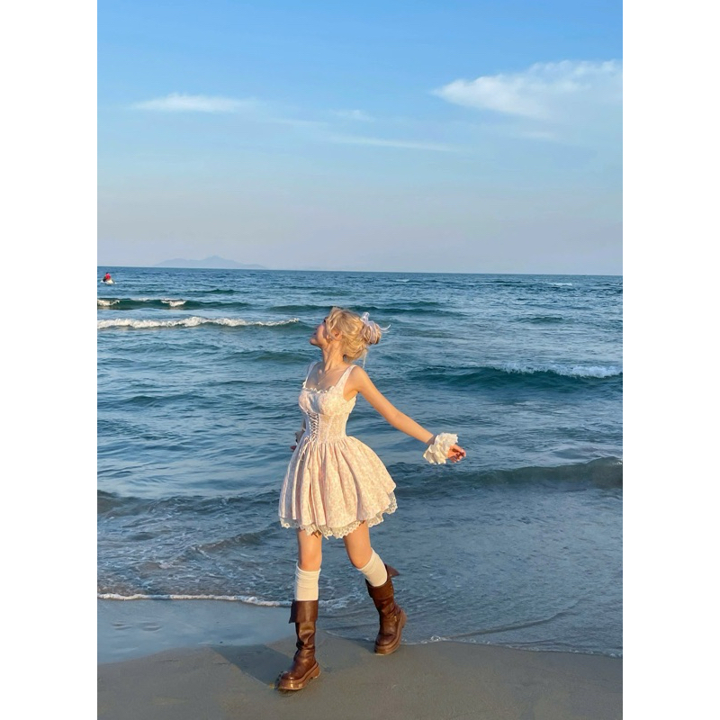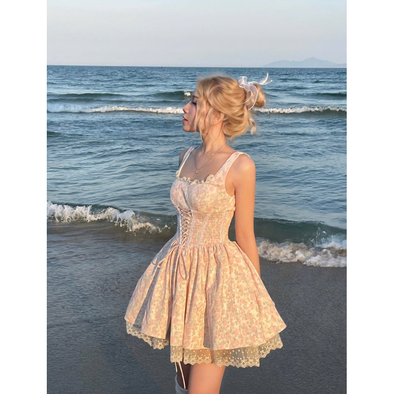 [NANCY DRESS][có sớm]Đầm hoa nhí corset brand FLEURIE đan dây chun eo ôm form,tôn dáng tặng kèm dây thắt corset dáng xoè