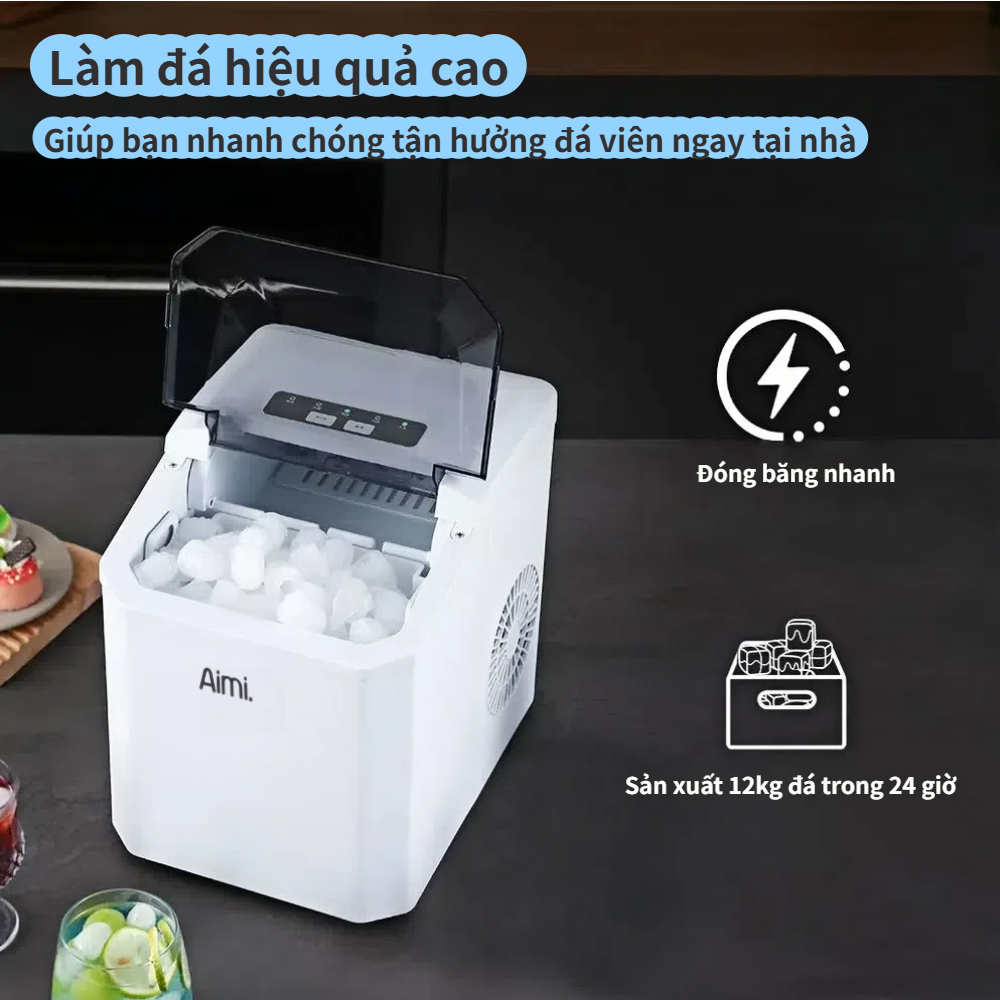 Máy Làm Đá Viên Aimi Siêu Tốc 8 Phút Tủ Lạnh Làm Đá MINI Gia Đình Làm Đá Nhanh, Tự Động Bảo hành 2 năm