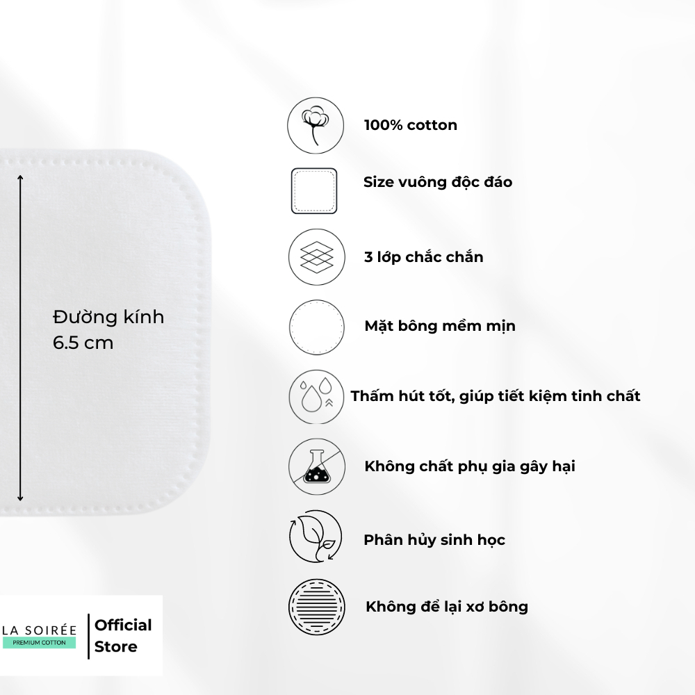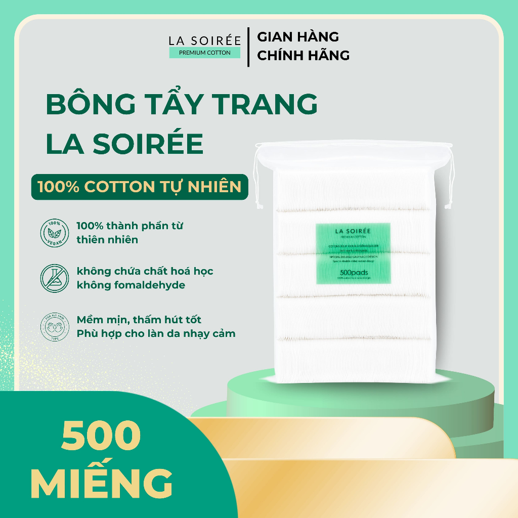 500 Miếng bông tẩy trang La Soirée 100% cotton, mềm mịn, dai, dập viền xung quanh