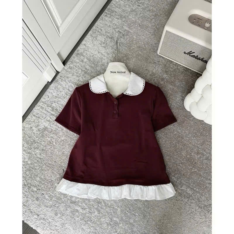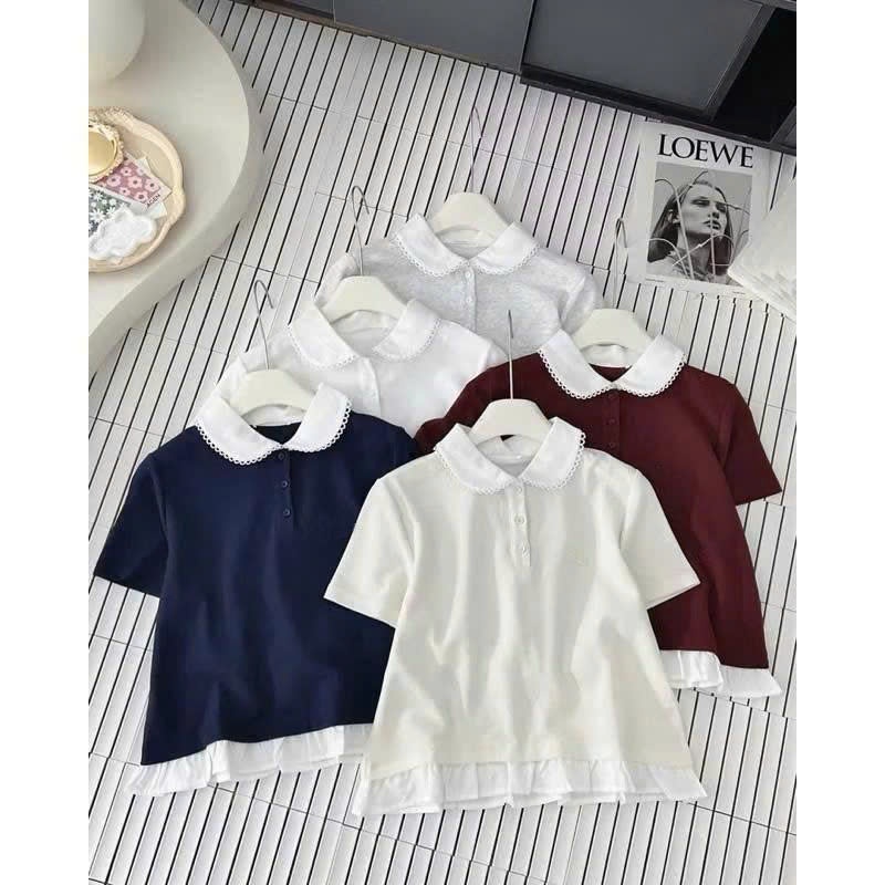 [ DEAL MỞ BÁN ] Áo Thun Polo Cổ Sen Phối Cổ Viền Bèo Trẻ Trung Năng Động Đủ Màu