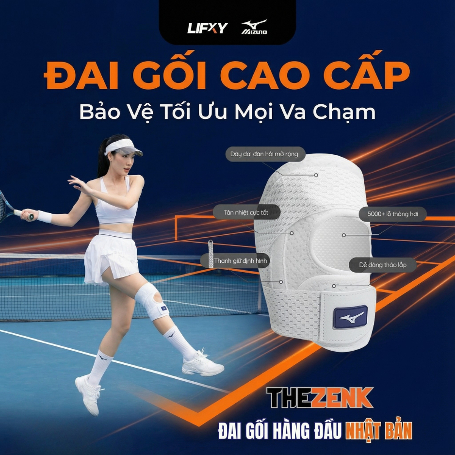 Bó Gối Pickleball Chuyên Dụng, Hạn Chế Chấn Thương, Chống Đau Đầu Gối, Thoáng Khí - ZenK Mizuno