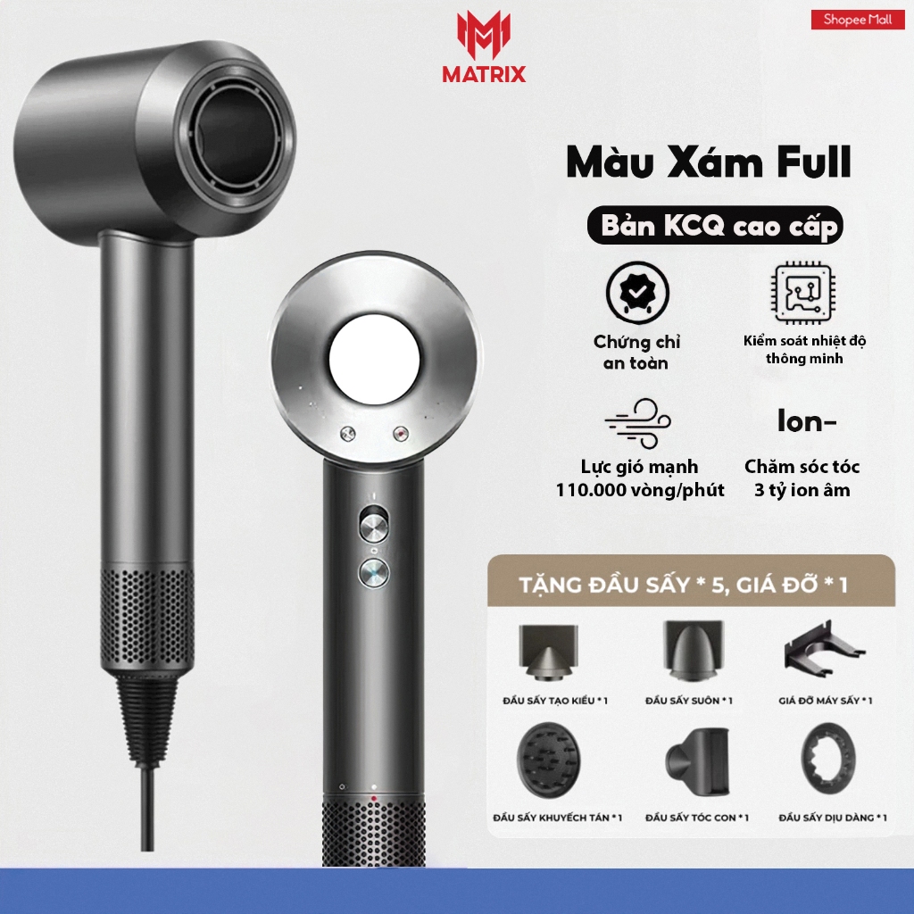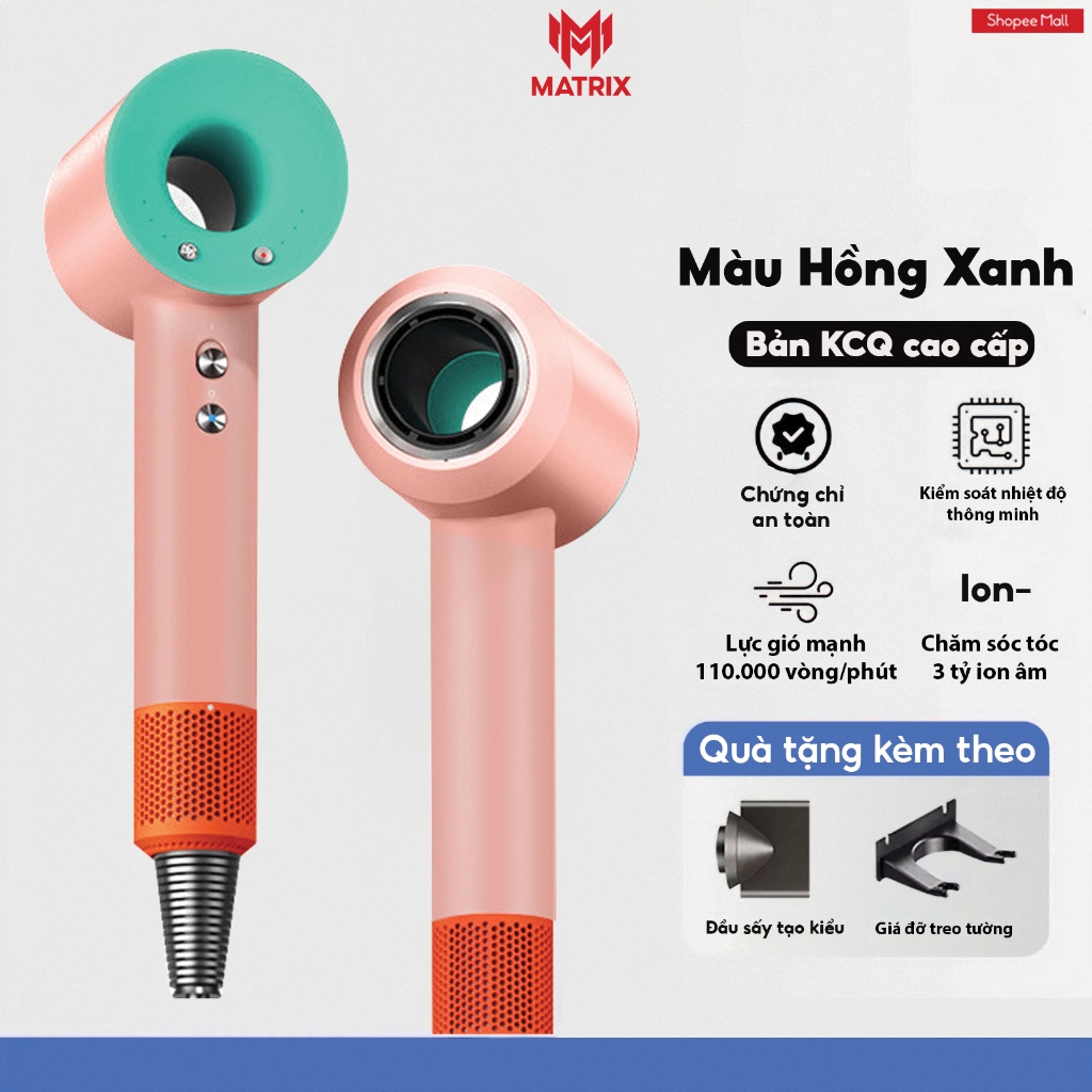 Máy sấy tóc ion âm Matrix, công suất lớn chuẩn salon, động cơ không cánh quạt êm ái, bảo hành 12 tháng