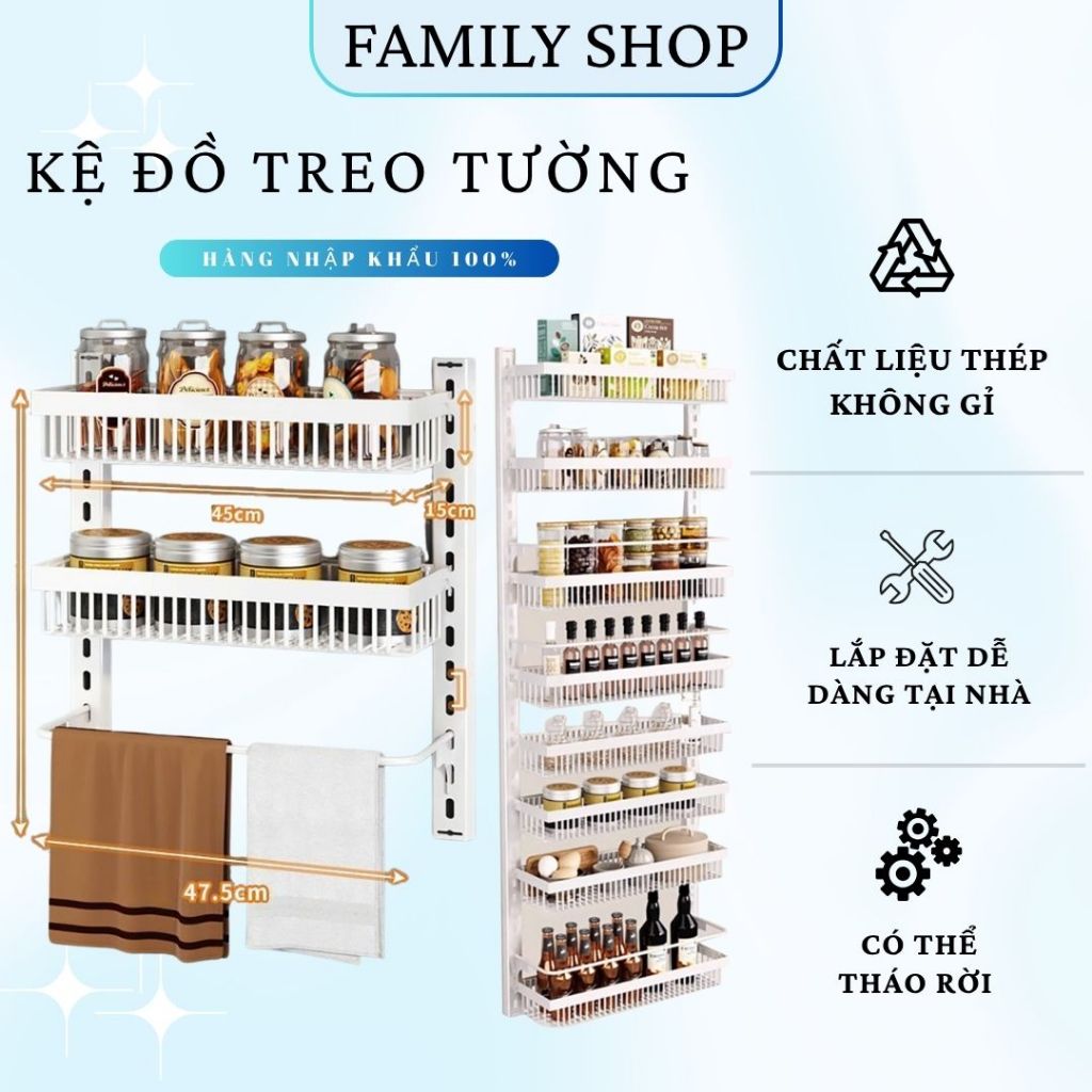 Giá để đồ treo tường, giá kệ treo tường không cần khoan, để đồ phòng tắm, nhà bếp, giá kệ đa năng