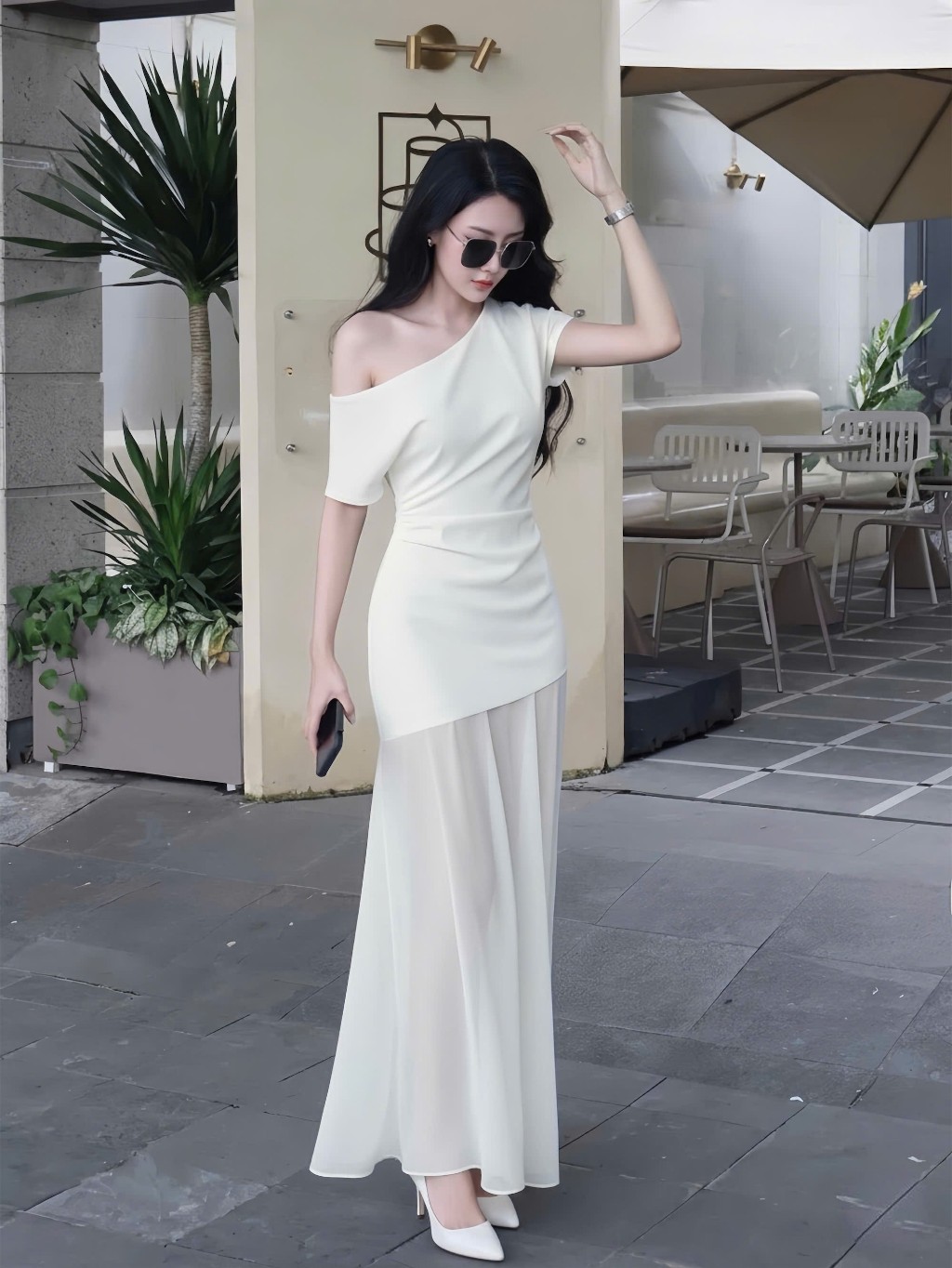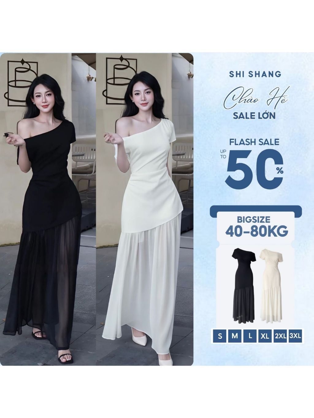 [𝐇𝐚̀𝐧𝐠 𝐐𝐮𝐚̉𝐧𝐠 𝐂𝐡𝐚̂𝐮 - 𝟐 𝐋𝐨̛́𝐩] Đầm Lệch Vai Dáng Dài Phối Tơ Xòe, Váy Tiệc Bigsize Thiết Kế by 𝐒𝐇𝐈 𝐒𝐇𝐀𝐍𝐆