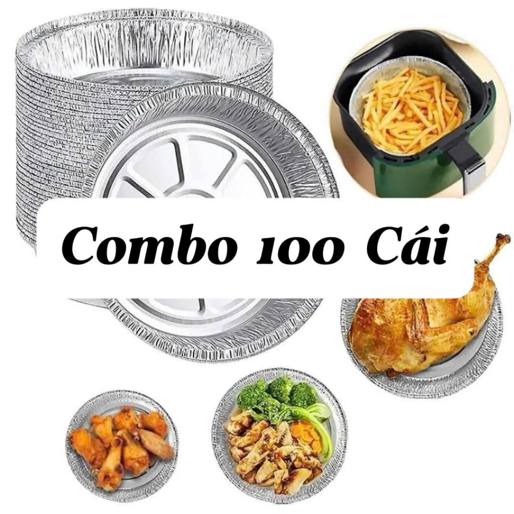 [HỎA TỐC HCM] Combo 50 Khay Giấy Bạc Bo Viền 22cm Dùng Cho Nồi Chiên Không Dầu Đựng Thực Phẩm