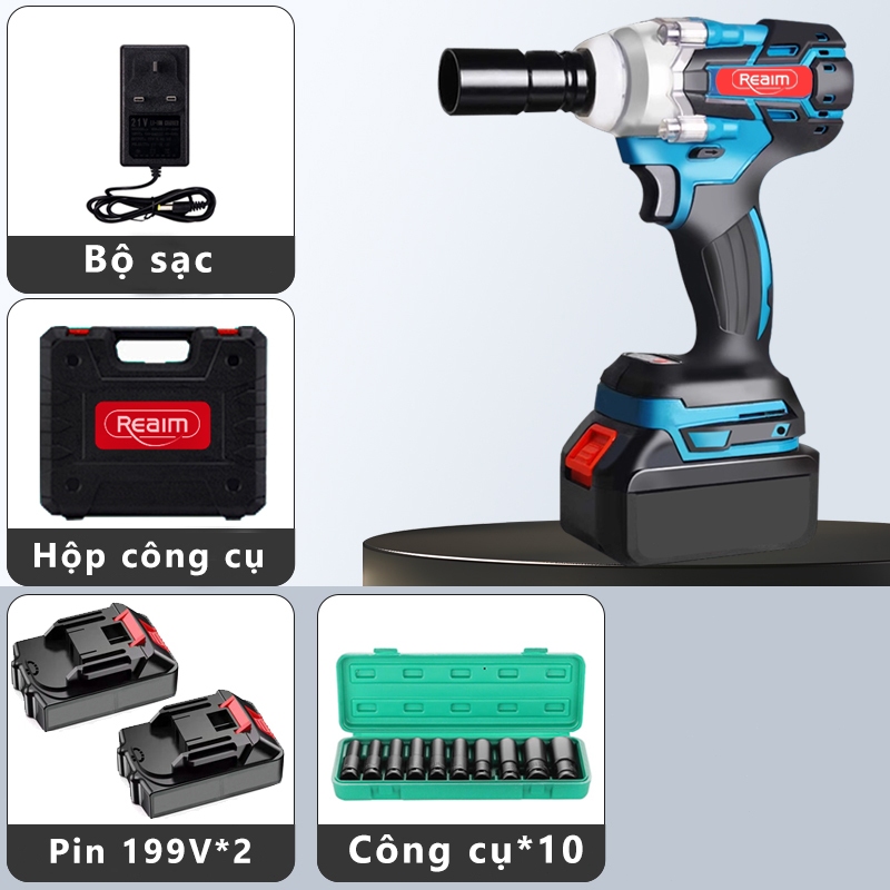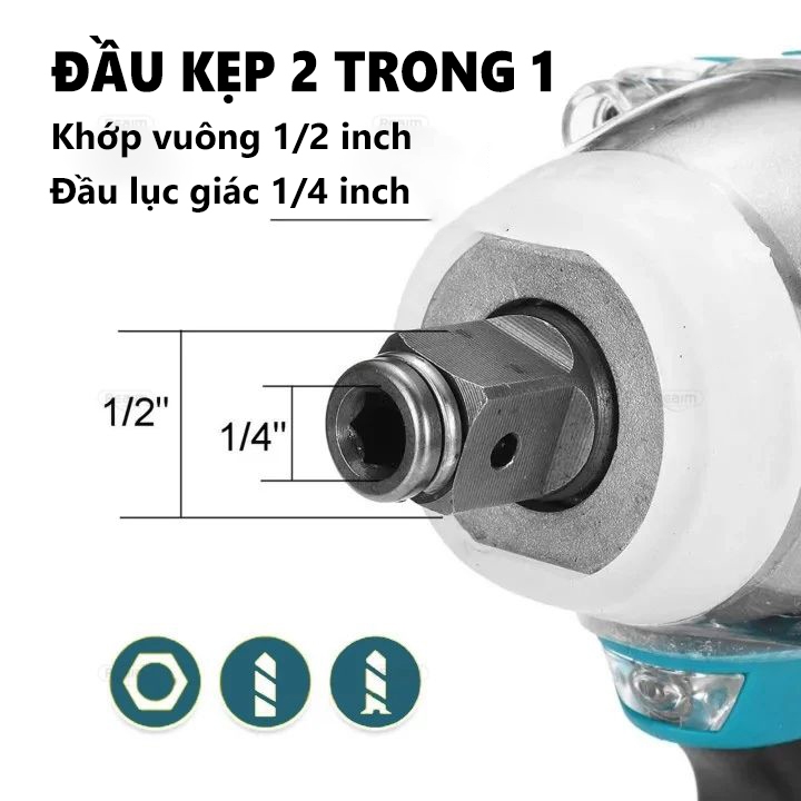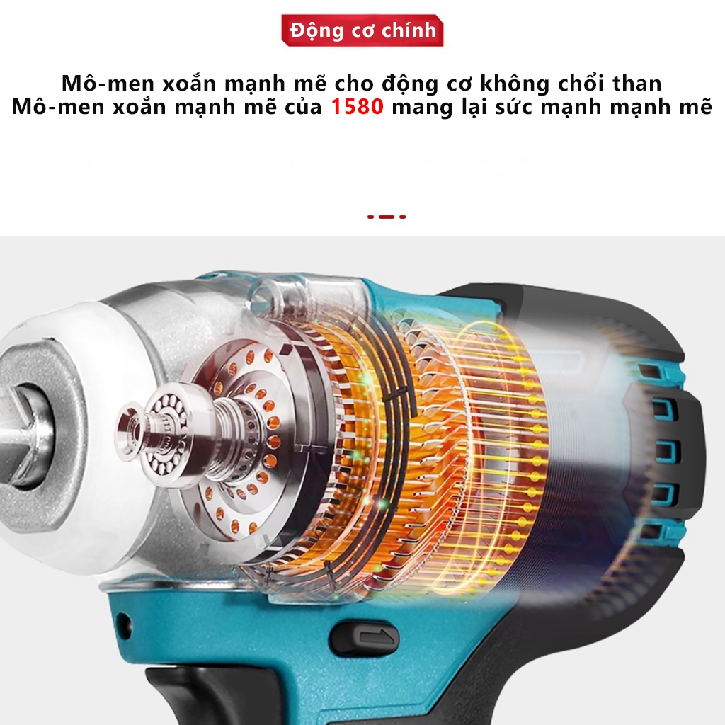 Máy Siết Bulong lực lớn,Lực Siết 380Nm đầu 2 trong 1 Mở ốc nồi xe ga, ốc bulong,bảo hành chính hãng 12 tháng
