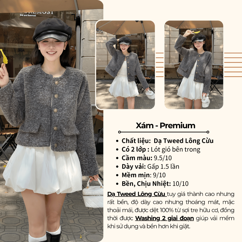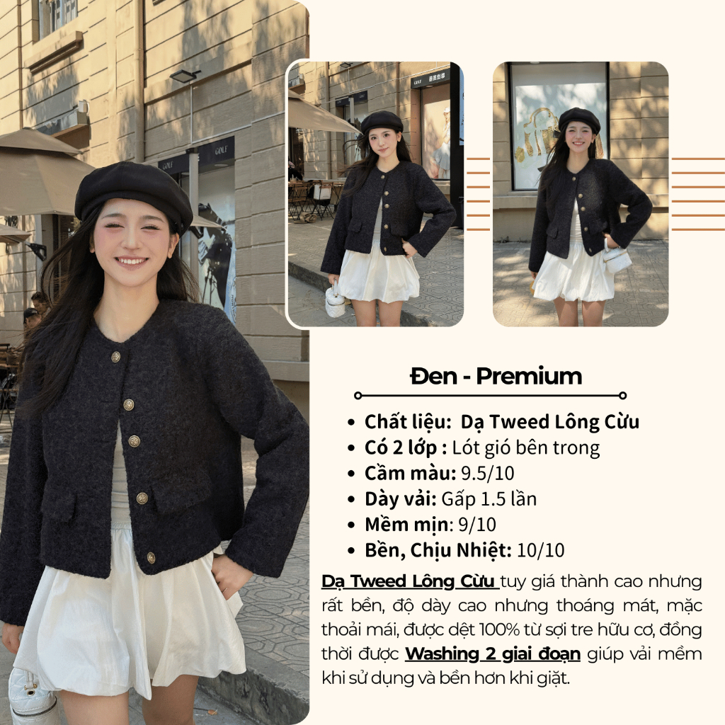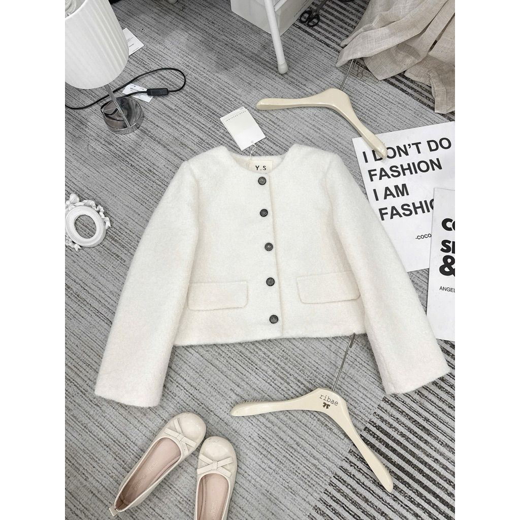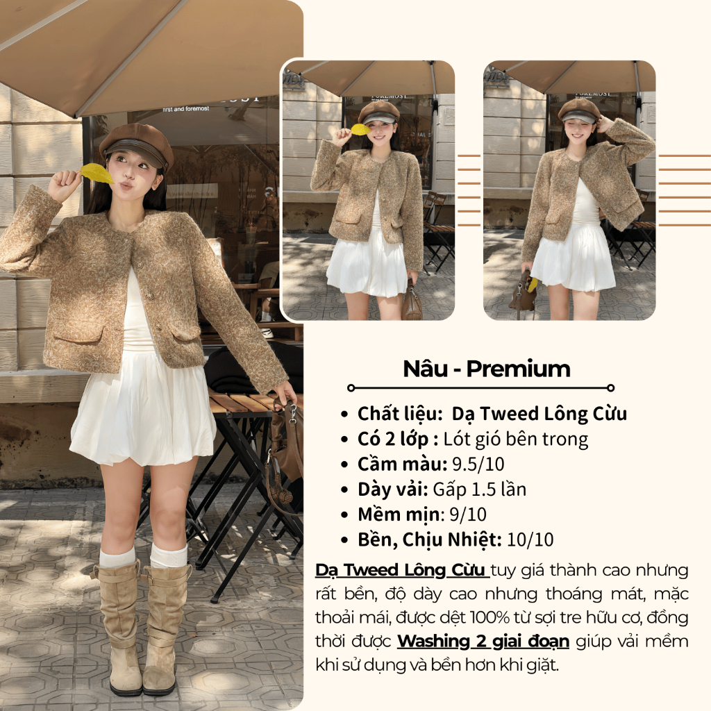 Áo Khoác Dạ Nữ Tweed Bông Xù Dáng Ngắn Cổ Tròn Túi Nắp 3 Màu Nâu,Kem,Đen diện thu đông siêu xinh new 2026