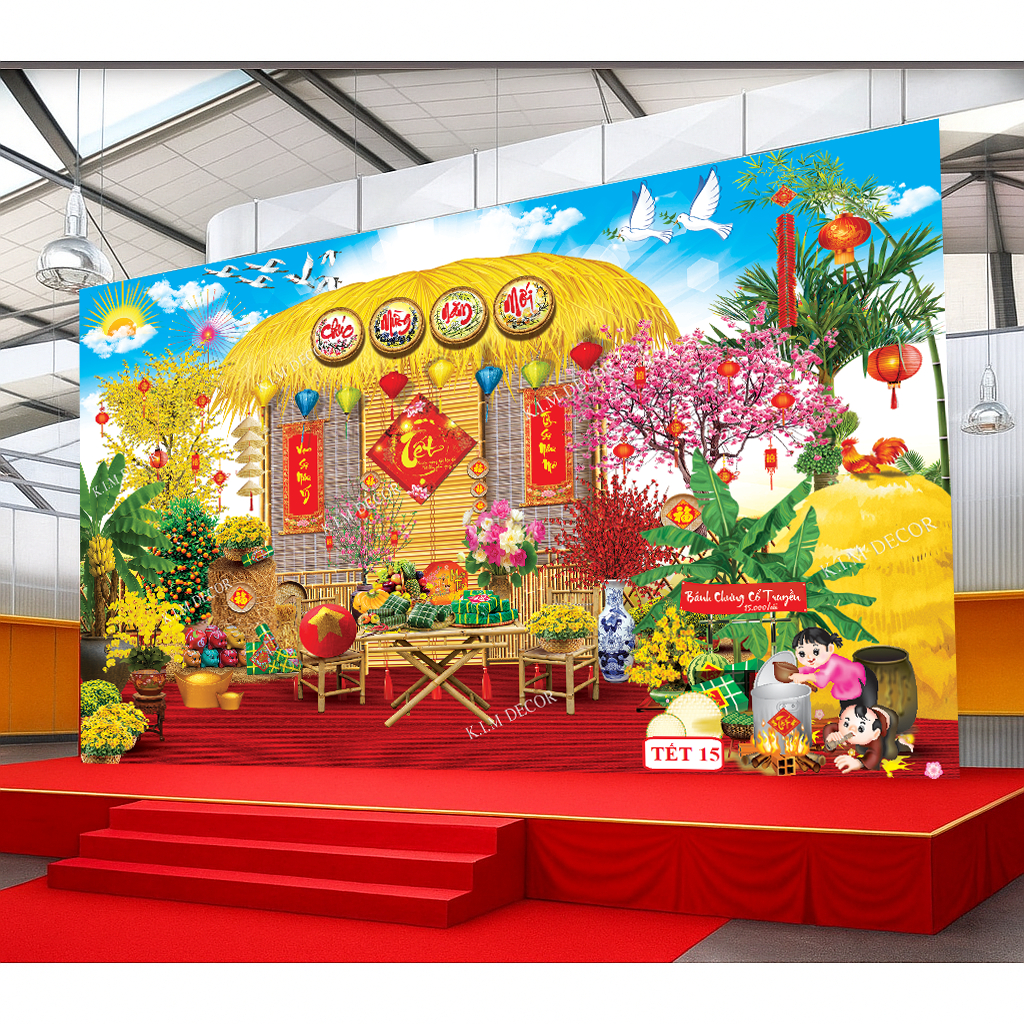 Tranh vải treo tường Phong cảnh Mã Đáo Thành Công khổ lớn, Phông nền trang trí decor Tết mẫu mới TET01 PC01-REM1