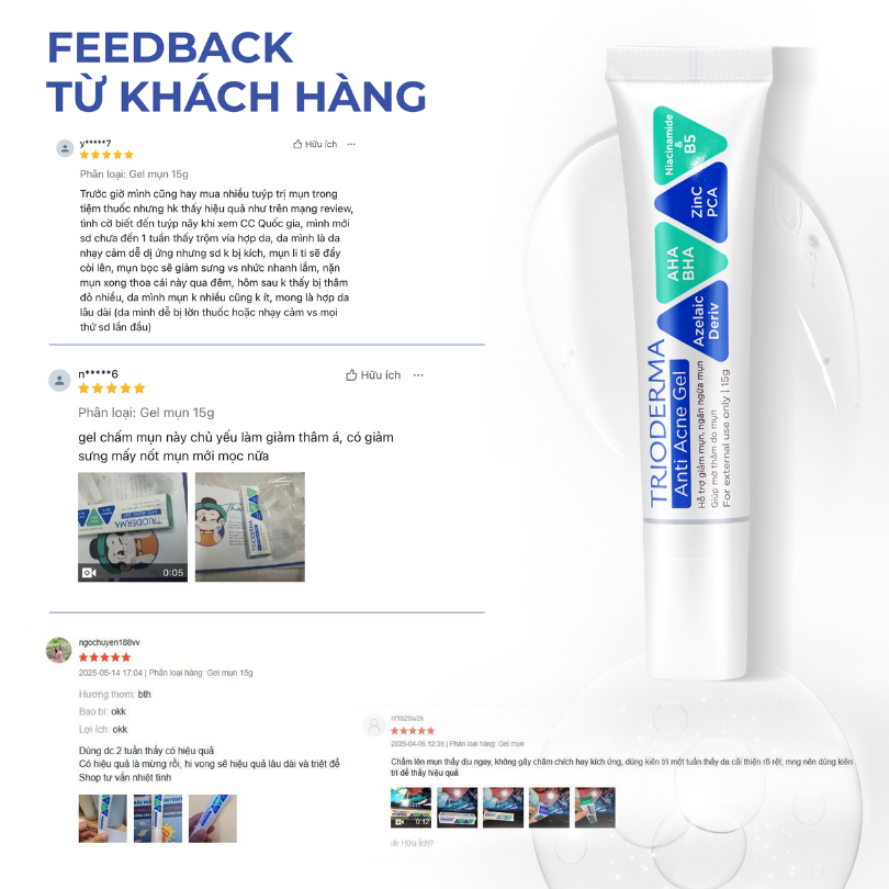 Gel Giảm Mụn Và Thâm Trioderma Anti Acne Gel 15g