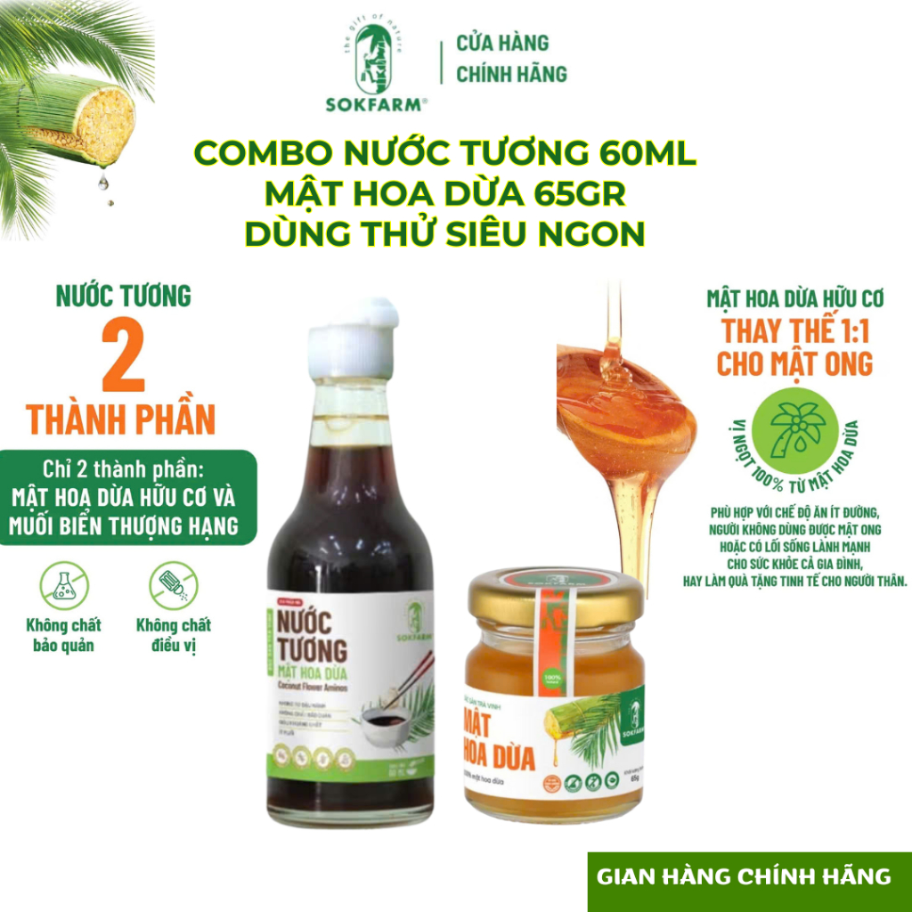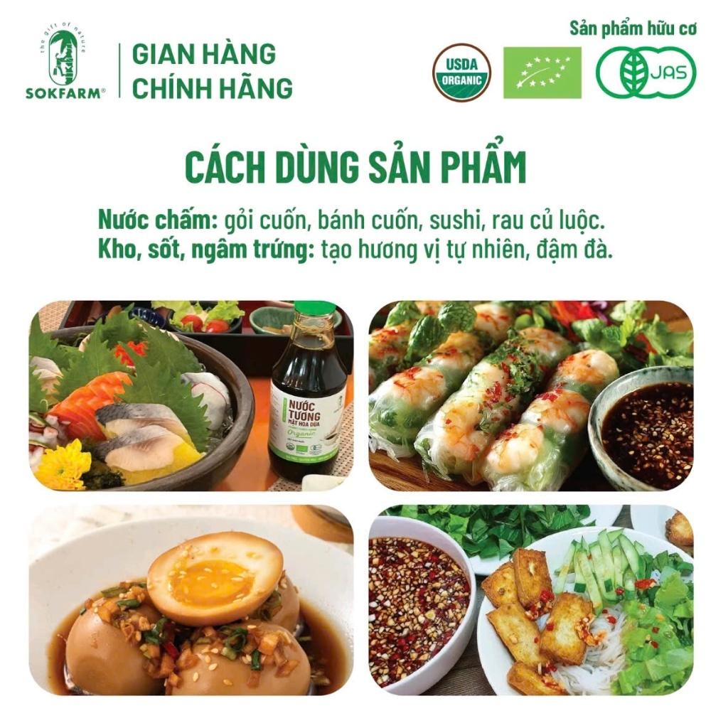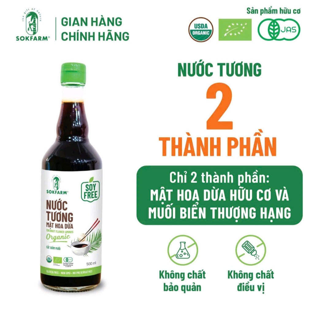 [SALE SHOP MỚI Chai 500ml] Nước tương hữu cơ mật hoa dừa Sokfarm Organic không đậu nành, giảm muối