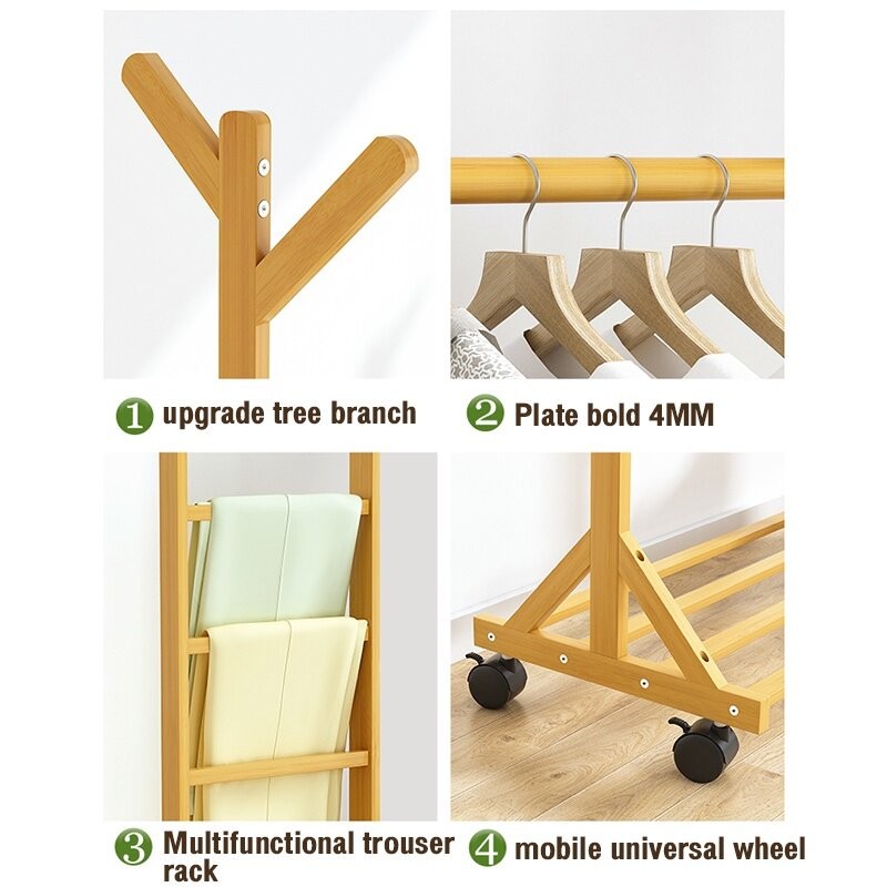 Giá treo áo bằng tre đa năng, giá treo quần áo cây treo quần áo giá treo áo bằng tre chống ẩm và mối mọt