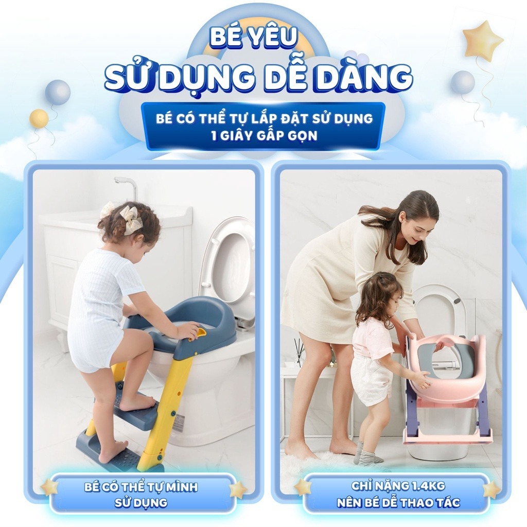 Thang bồn cầu cho bé, Thang bồn cầu có nắp đậy siêu nhỏ gấp gọn tiện lợi,Phù hợp cho bé