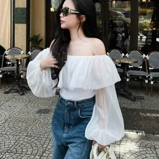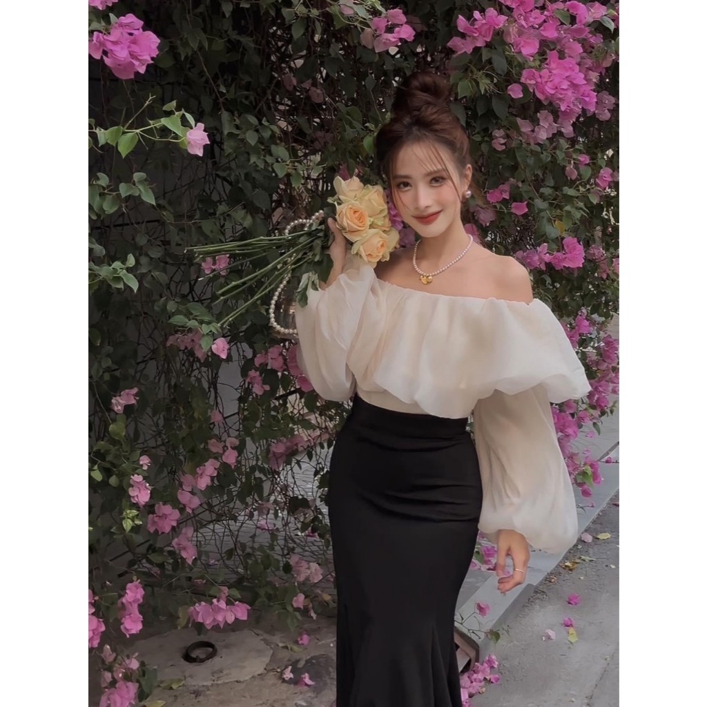 Áo trễ vai tay bồng dáng croptop sang chảnh áo tiểu thư bánh bèo chất liệu voan tơ mềm mịn A919 PANOSI