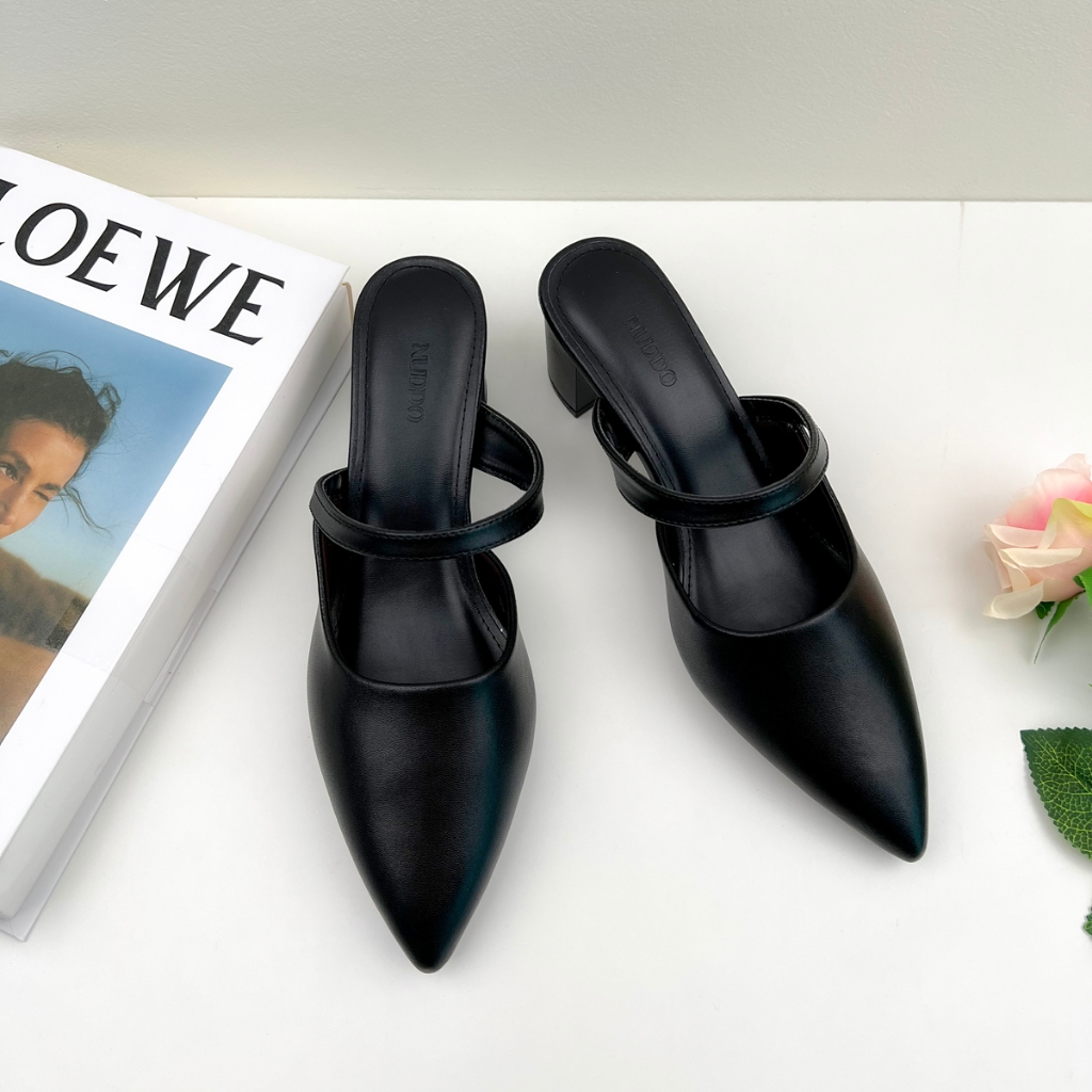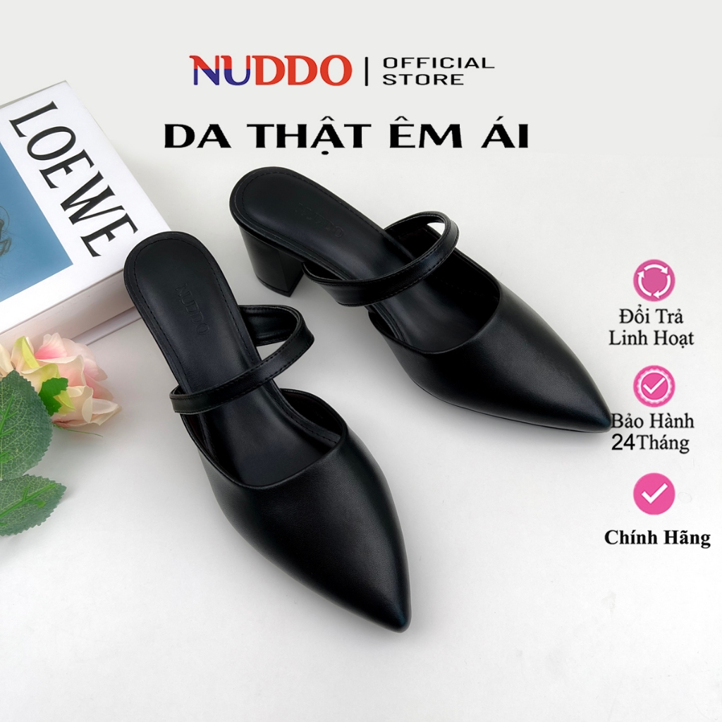 Giày Sục Nữ Mũi Nhọn Da Thật Basic Thanh Lịch, Dép Guốc Nữ Đế Vuông 5 Phân Thời Trang NUDDO N0601V