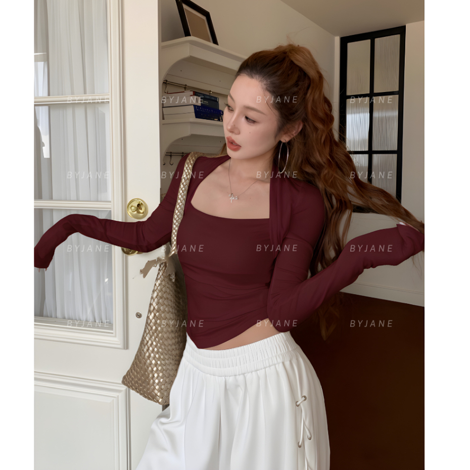 (XẢ KHO) Áo ôm Body Cúp Ngực Nhún Eo Dài Tay Cotton Lông mịn Siêu Co Dãn BYJANE -755