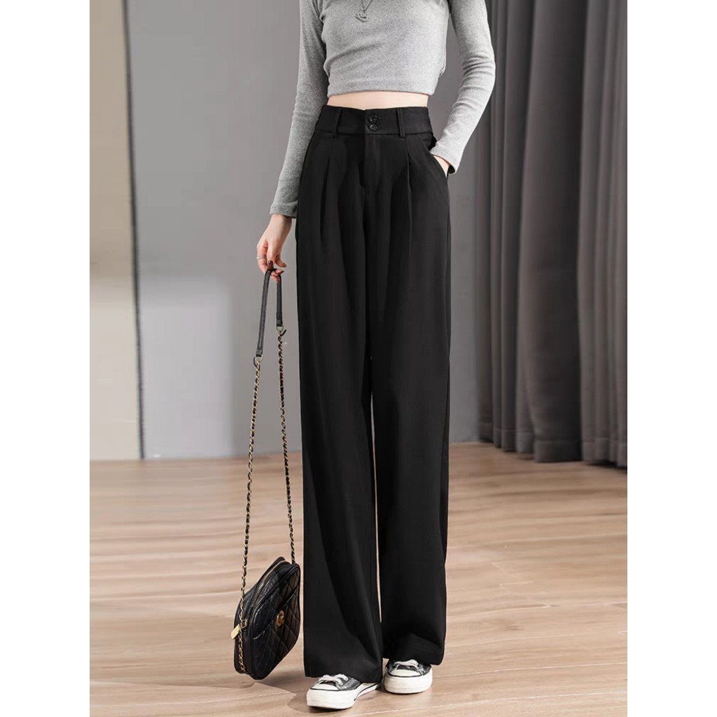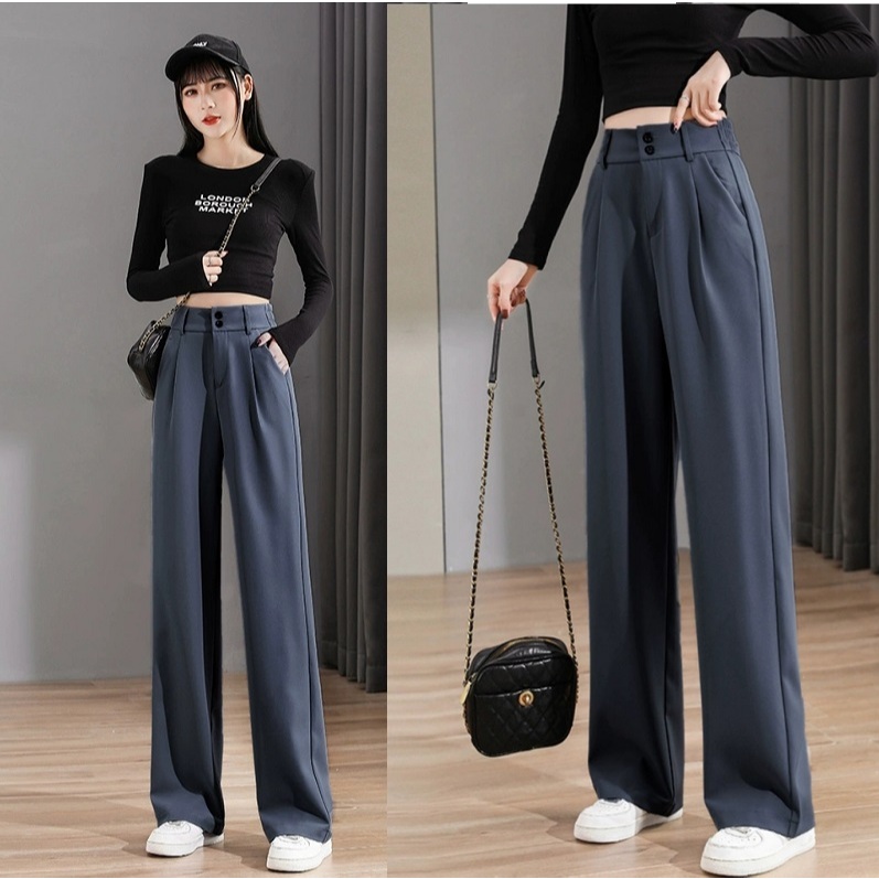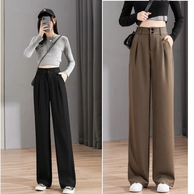 [Combo 2 quần] Quần tây nữ ống suông lưng chun cạp cao khóa trước Dáng Dài 100cm cạp bản to 7cm lưng cao siêu tôn dáng