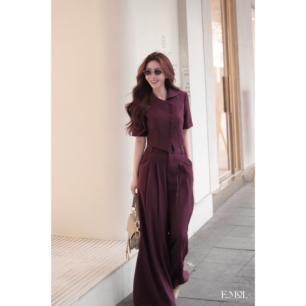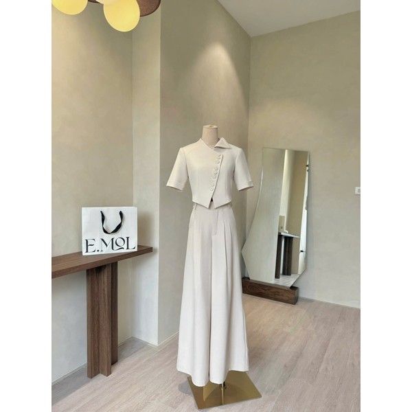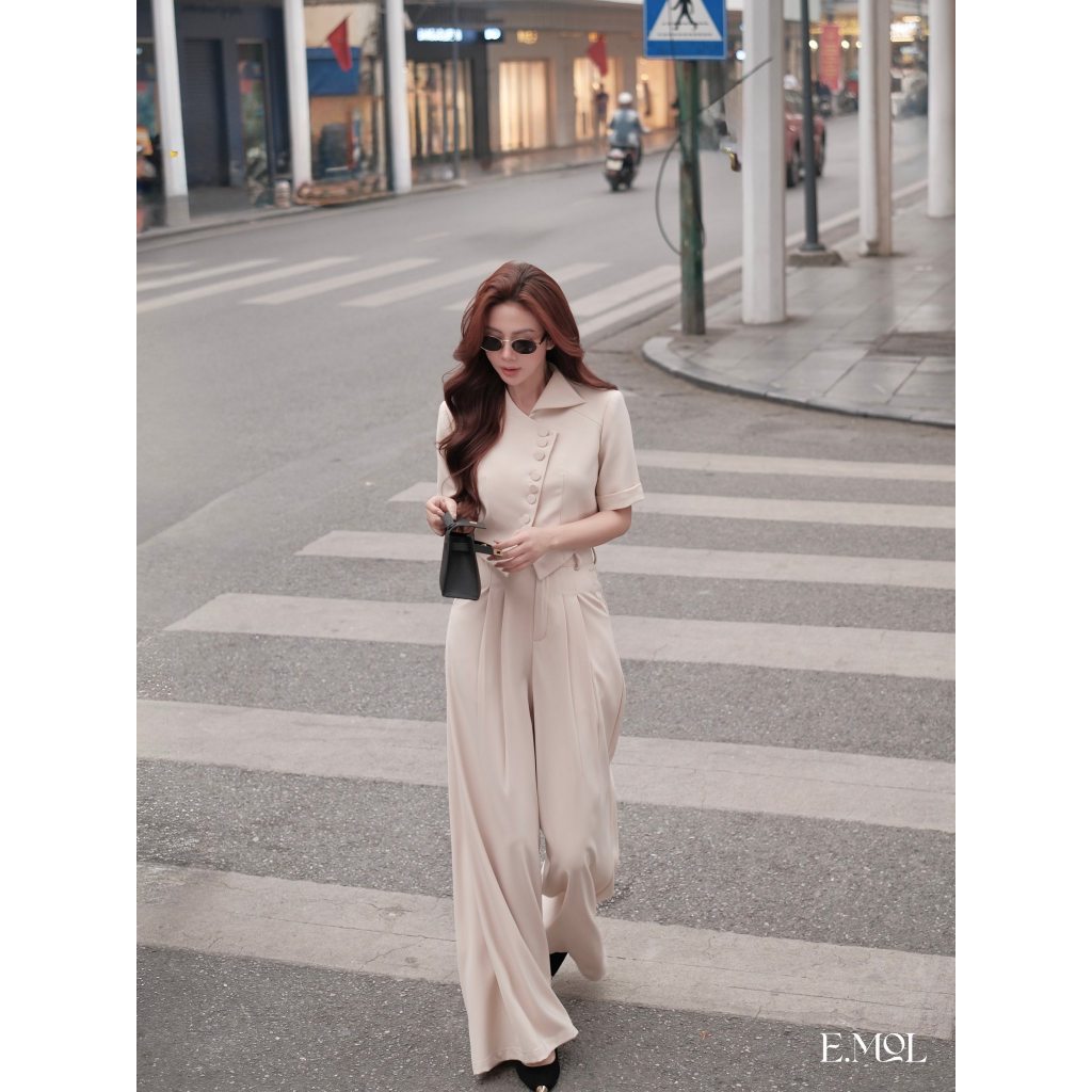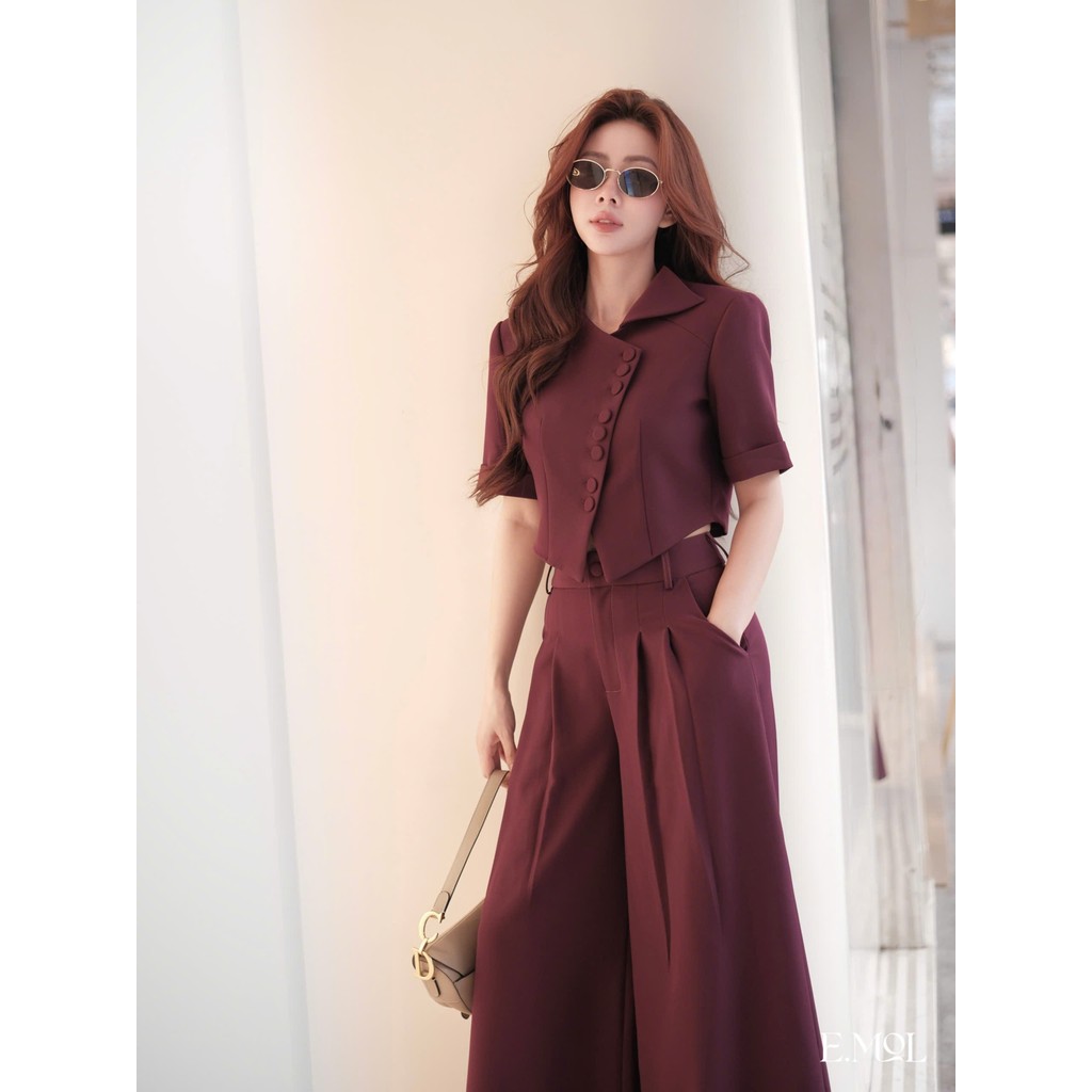 Set áo vest 8 khuy dáng ngắn và quần ống rộng công sở E.MOL