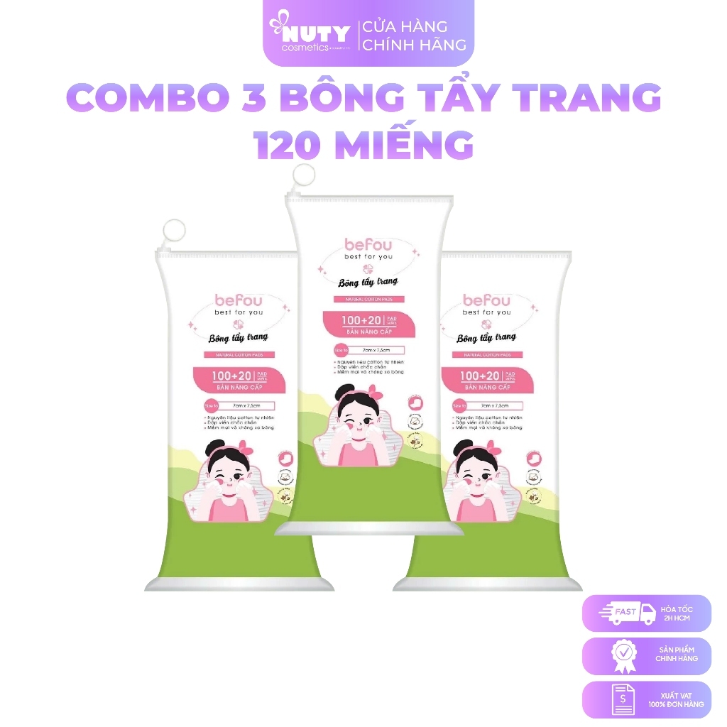 Bông Tẩy Trang Vuông To Befou Cotton Pad (120 Miếng)