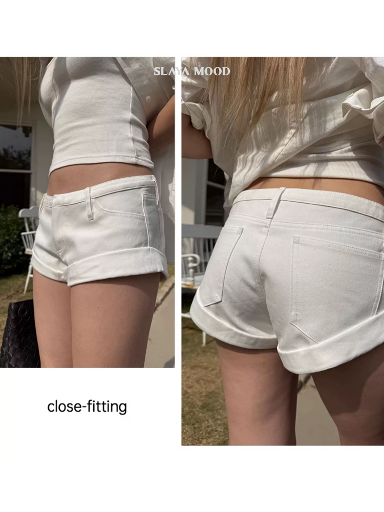 Quần Short Cạp Thấp Jean Màu Trắng- Low-rise Shorts-SLAYA MOOD (Form nhỏ khách giúp shop đọc kĩ bảng size)