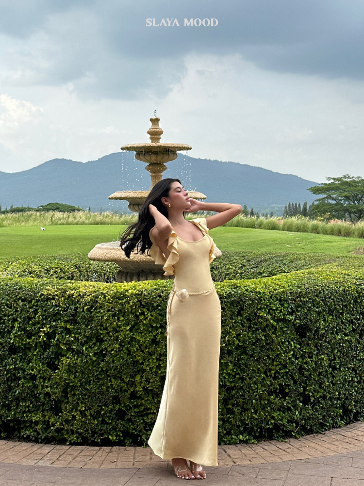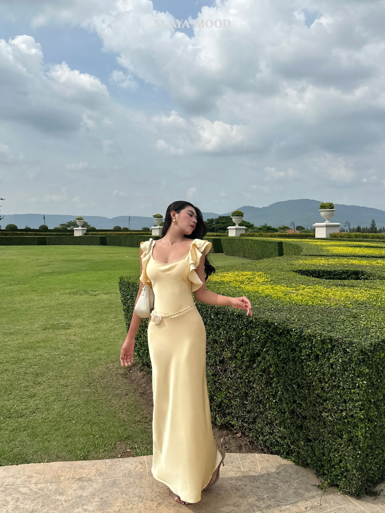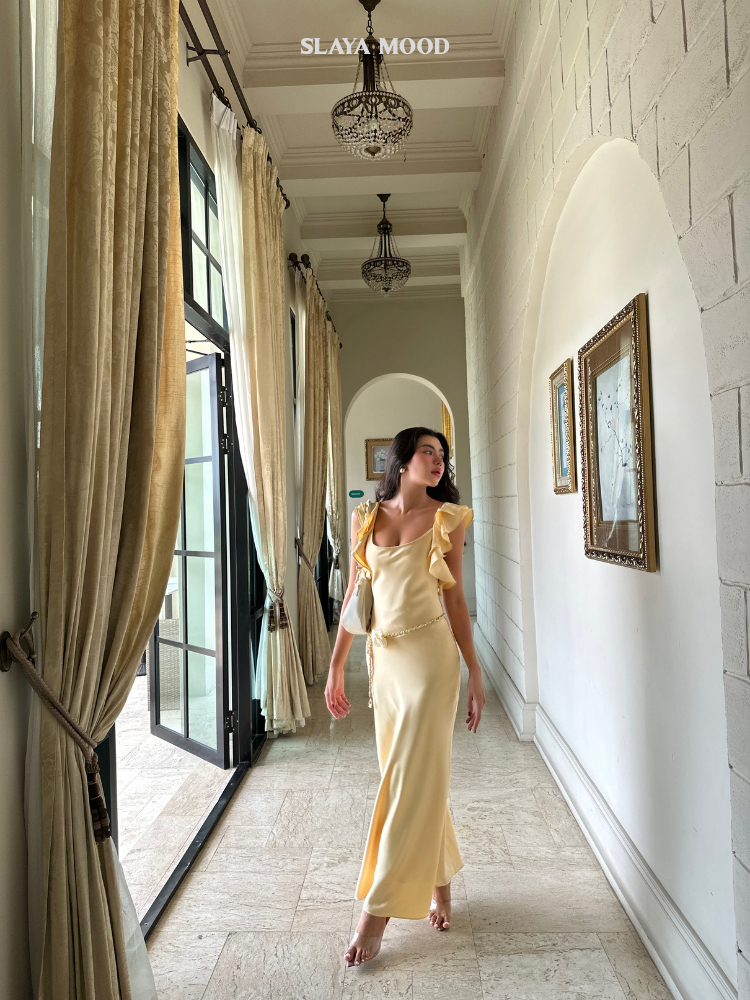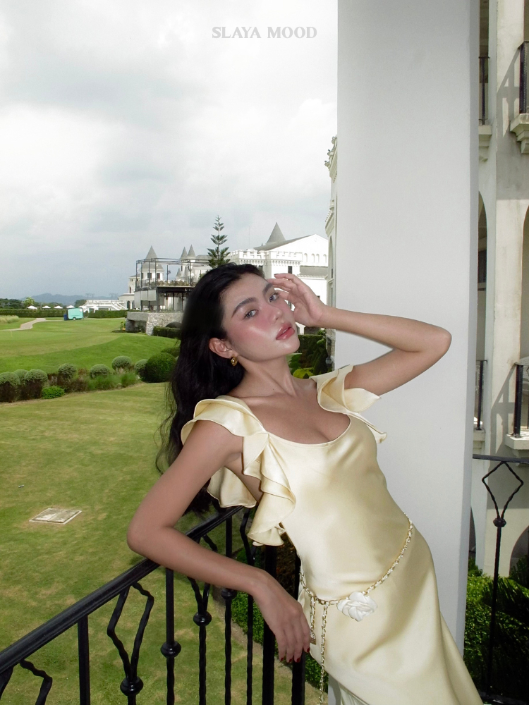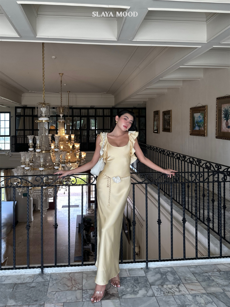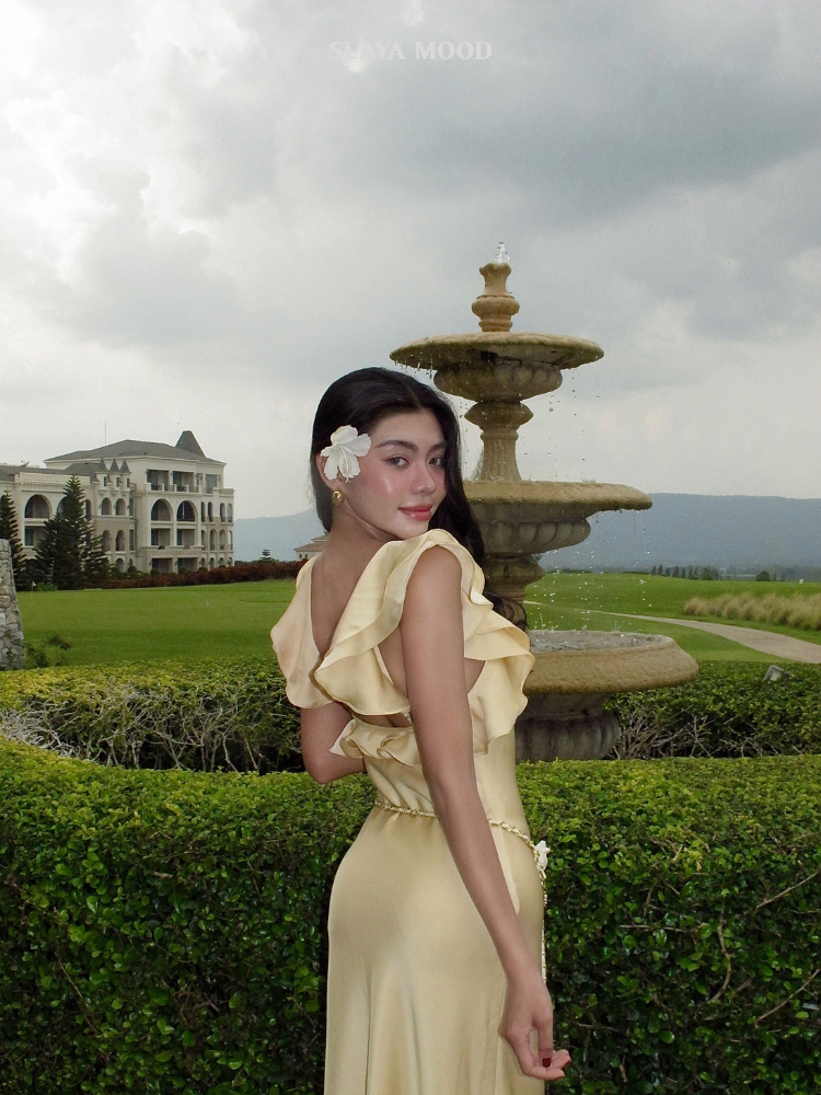 Đầm Lụa Dáng Dài Phối Bèo Hở Lưng Thanh Lịch - Blair Silk Dress - SLAYA MOOD