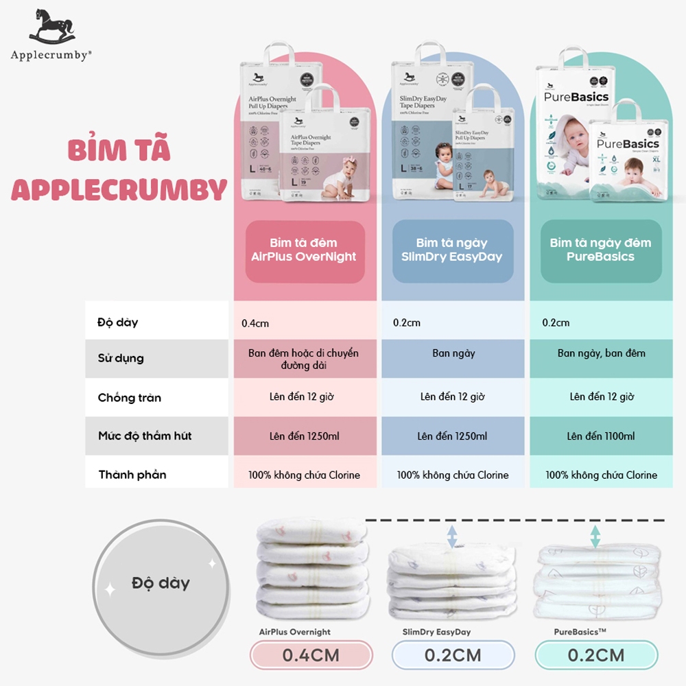 [MALAYSIA] Bỉm dán/quần 𝐀𝐏𝐏𝐋𝐄𝐂𝐑𝐔𝐌𝐁𝐘 Overnight + SLIM cao cấp Malaysia mẫu mới cho bé NB20/S23/M19/M21/L19/XL17/XXL15