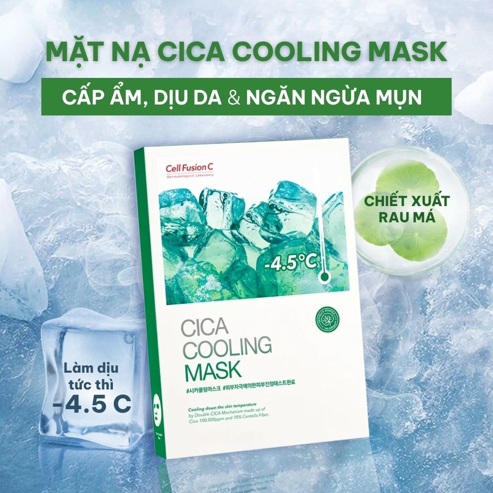 Mặt Nạ Rau Má Hạ Nhiệt -4.5 Độ Giảm Mụn & Làm Dịu Da Ứng Đỏ Cháy Nắng Cell Fusion C Cica Cooling Mask 5 Miếng