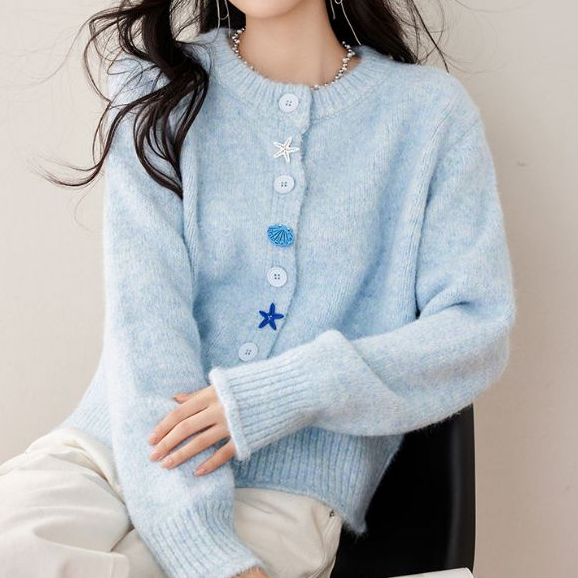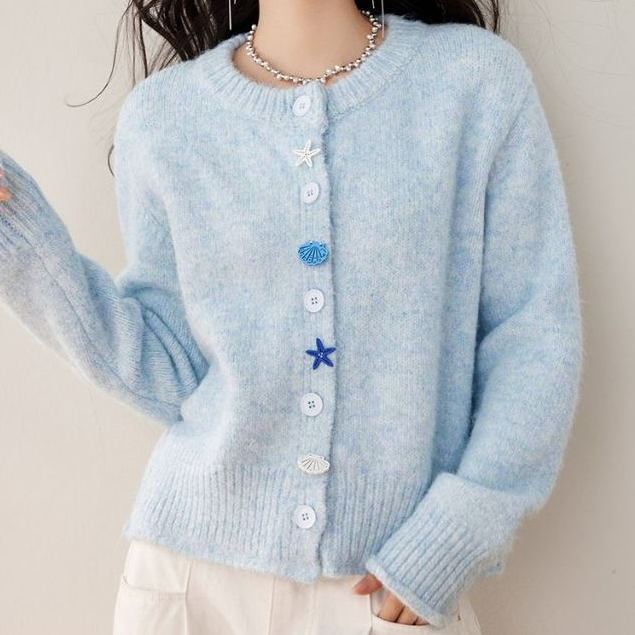 Áo len đan Cardigan dệt kim dài tay cho nữ Áo len đan Cardigan dệt kim màu xanh có nút