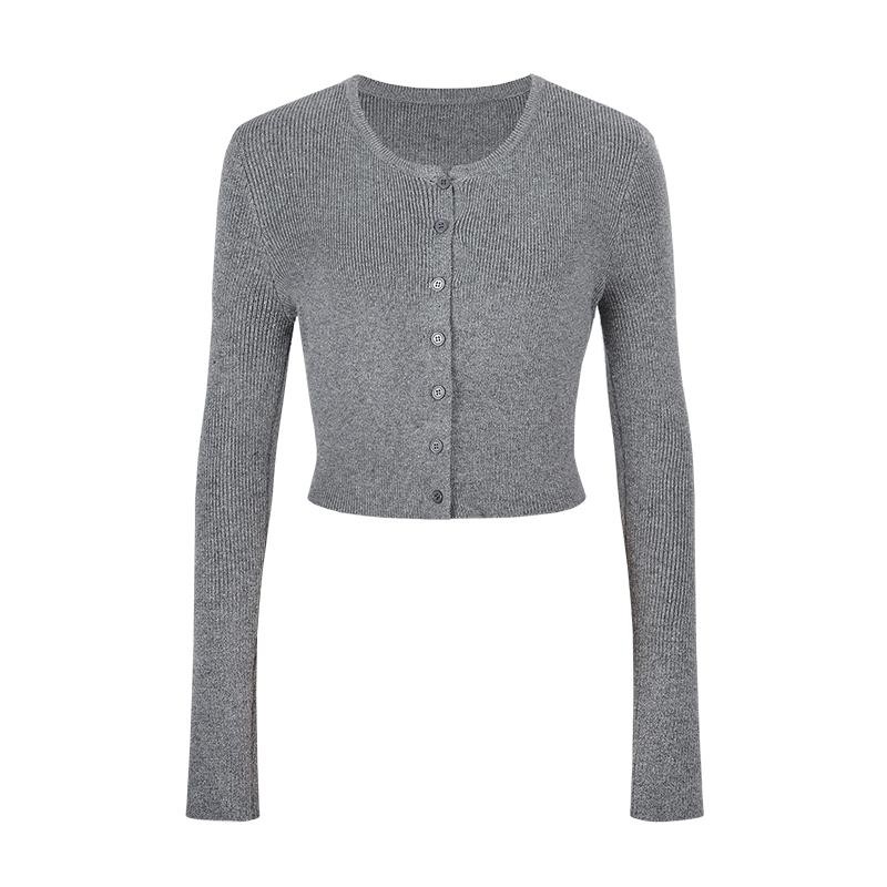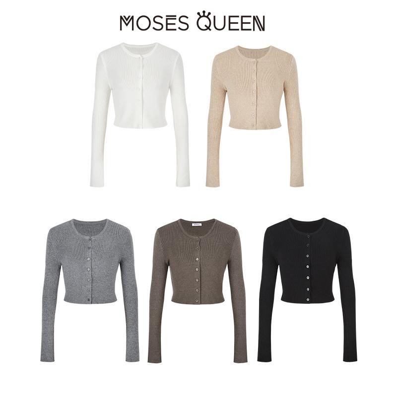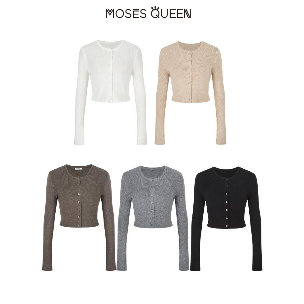 < MOSESQUEEN > Áo len dệt kim Nút bụng ngắn mới Áo khoác hàng đầu bé gái mỏng và mỏng #59259