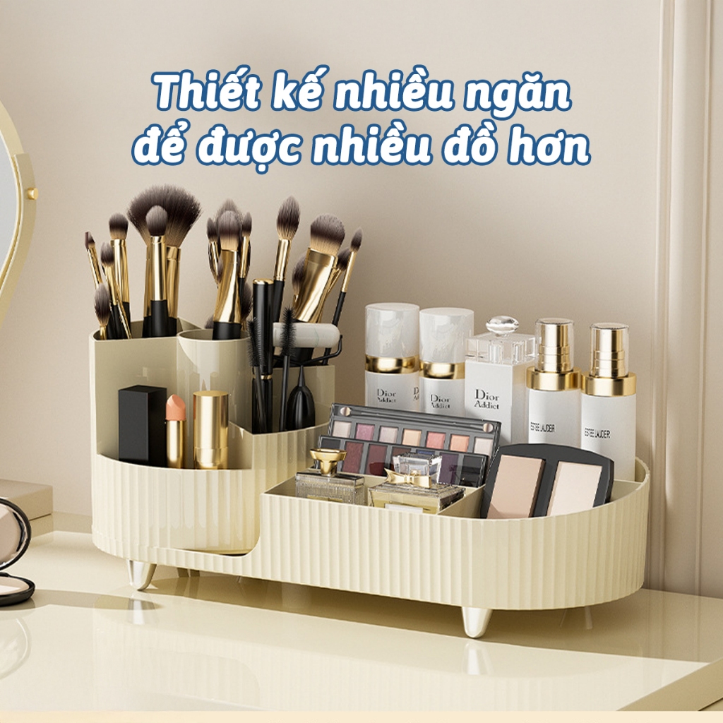 Kệ Đựng Mỹ Phẩm Đồ Trang Điểm Xoay 360 Khay Nhựa Để Bàn Đa Năng Sang Trọng Chia Ngăn Tiện Lợi