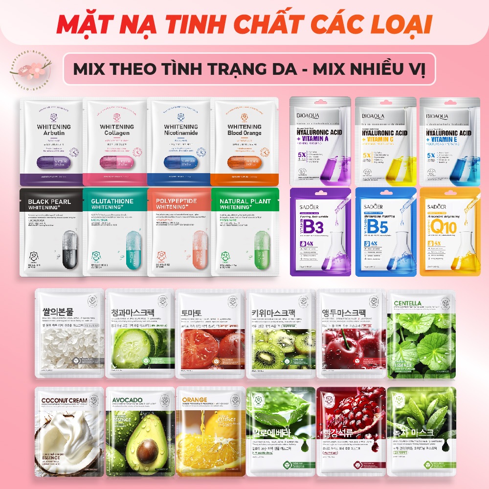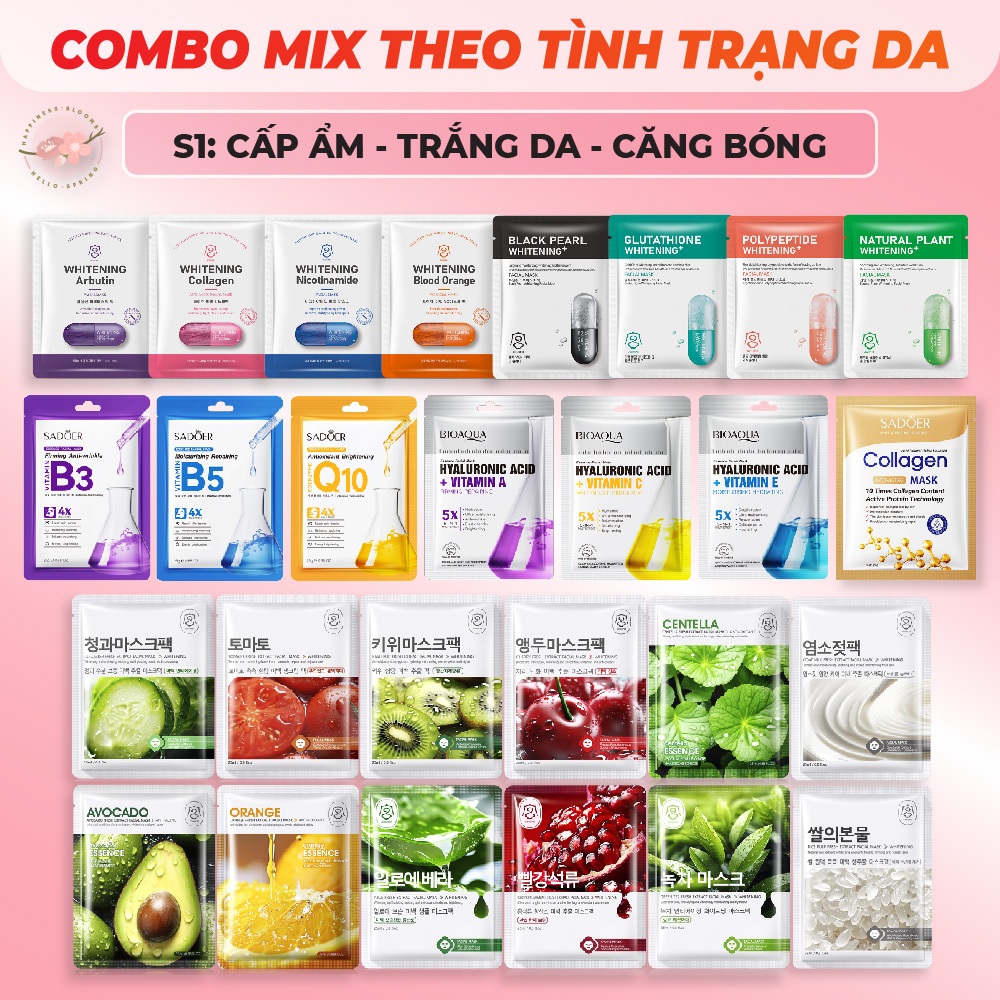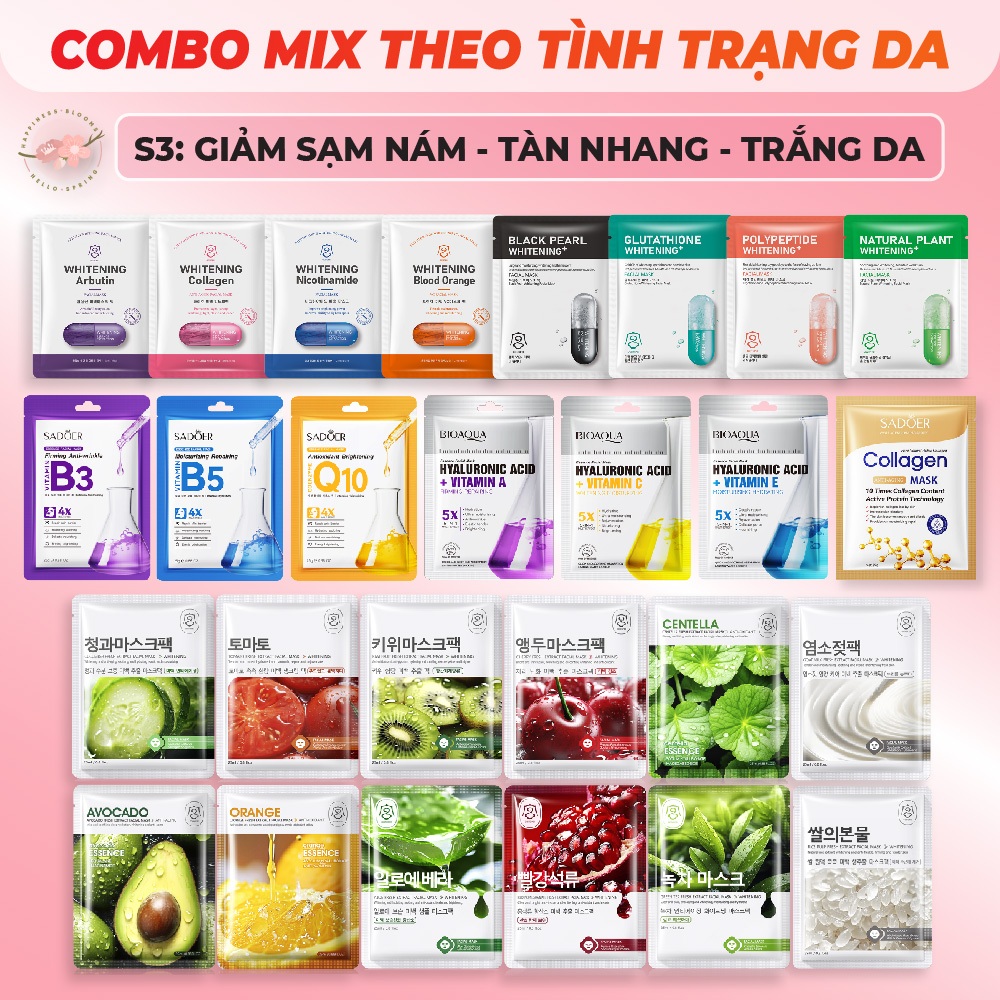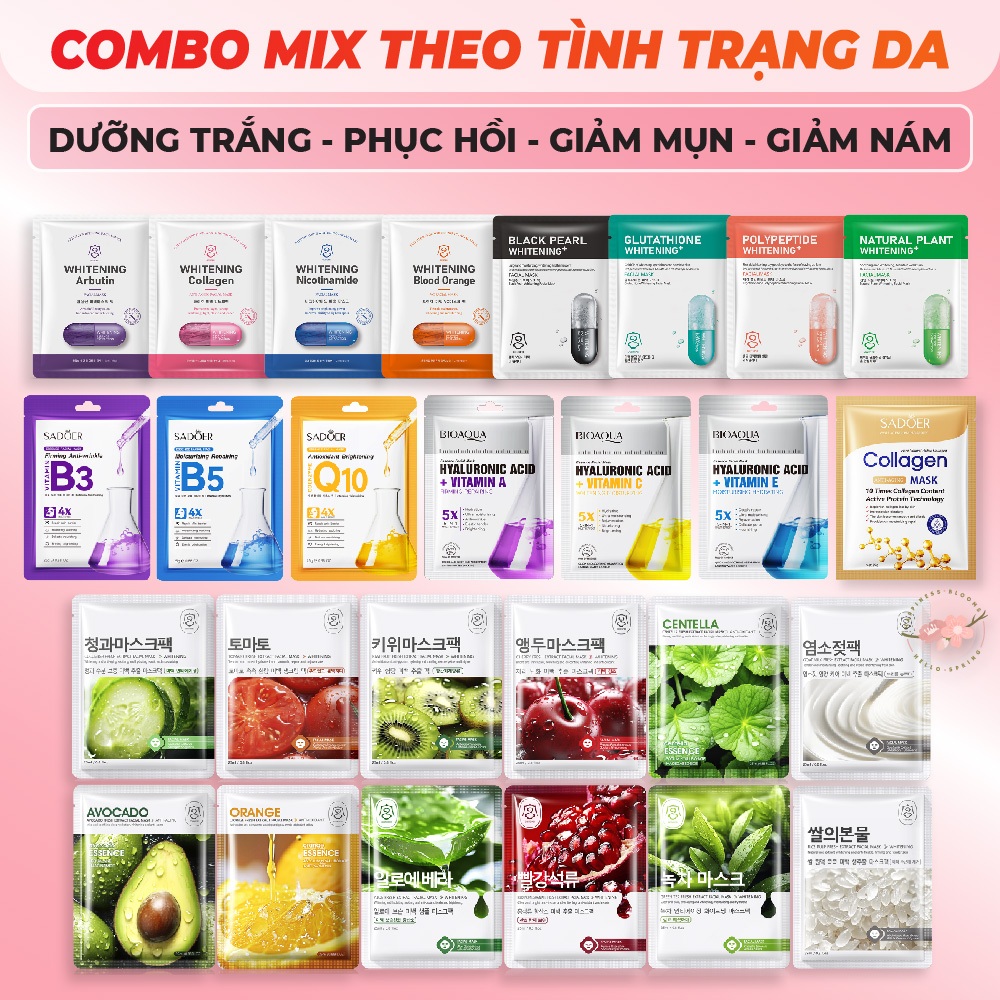 COMBO Mặt Nạ Dưỡng Da Mix Theo Làn Da Cấp Ẩm Trắng Da Giảm Thâm Nám Và Mụn Mask Giấy Đắp Mặt Tinh Chất Vitamin Trái Cây