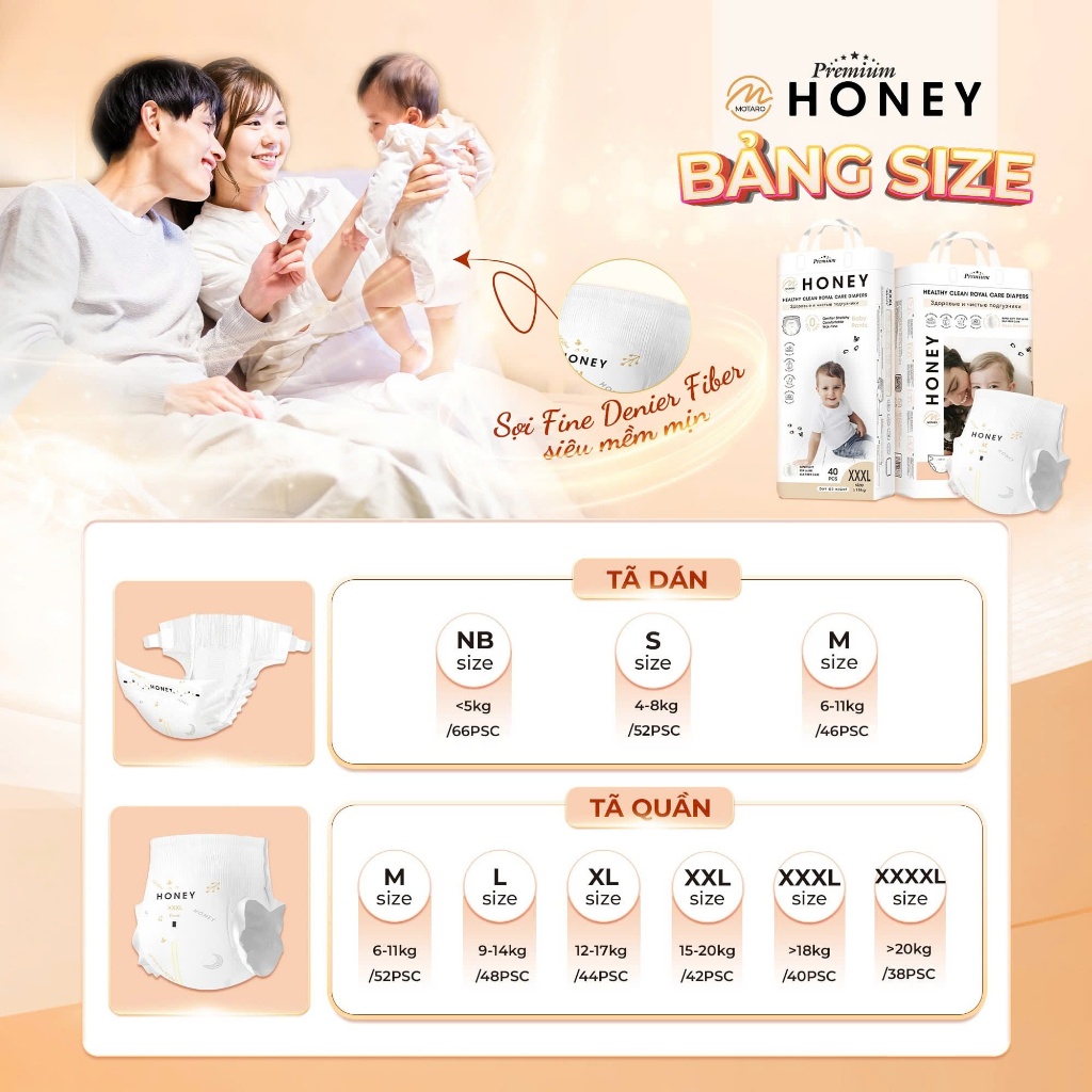 [COMBO 2 BỊCH TẶNG QUÀ] Tã Bỉm HONEY PREMIUM Chính Hãng, Tã Dán Bỉm Quần Full Size Cho Bé