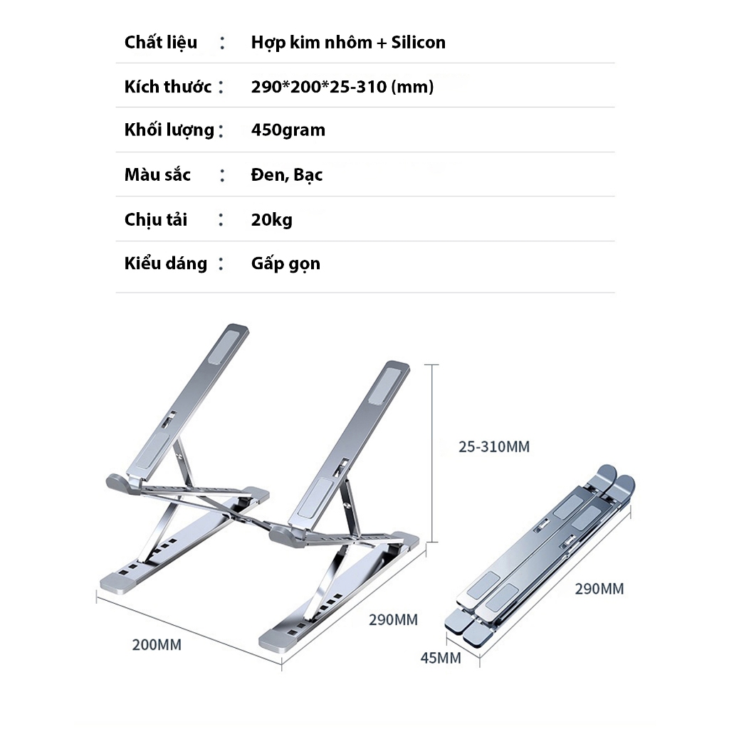 Giá Đỡ Laptop Hợp Kim Nhôm N8 2 Tầng Công Thái Học Điều Chỉnh Độ Cao Gấp Gọn Tản Nhiệt Chống Trượt