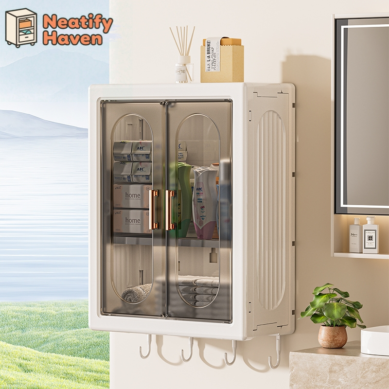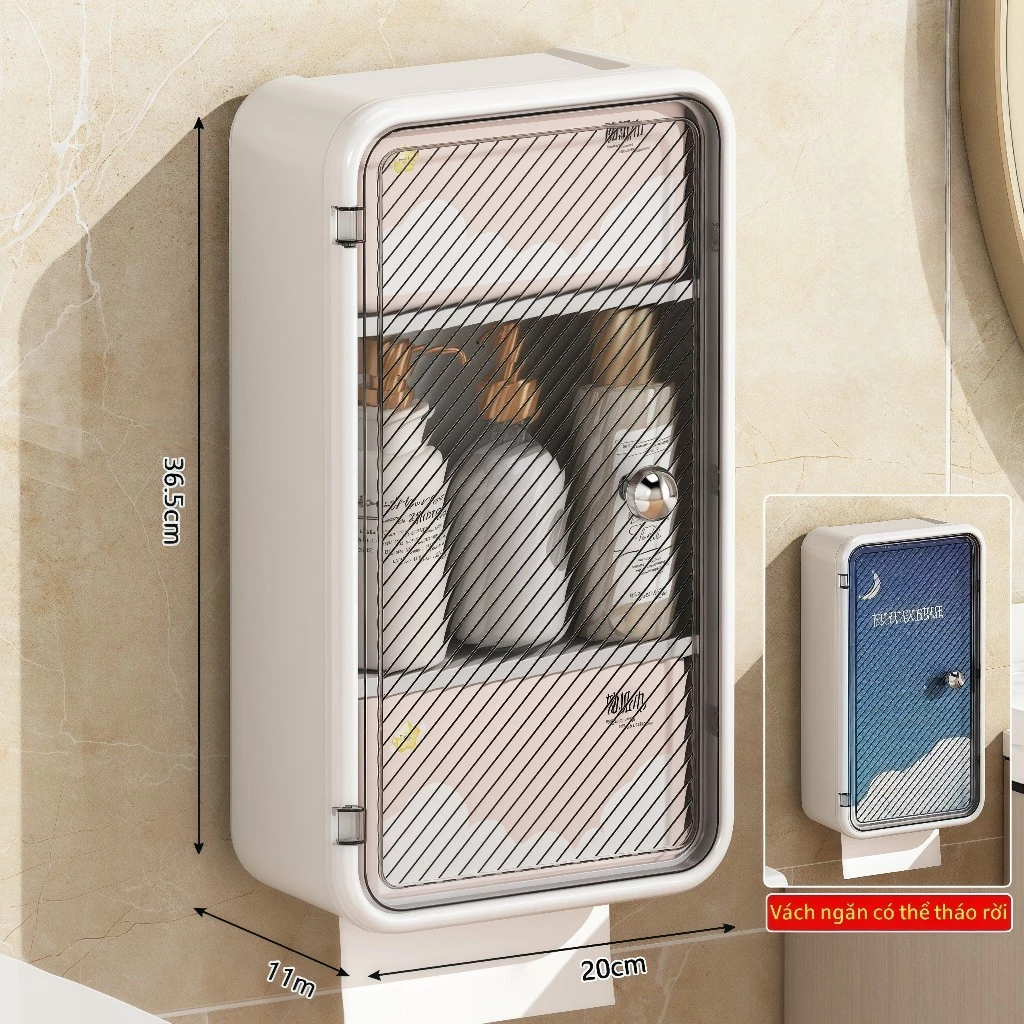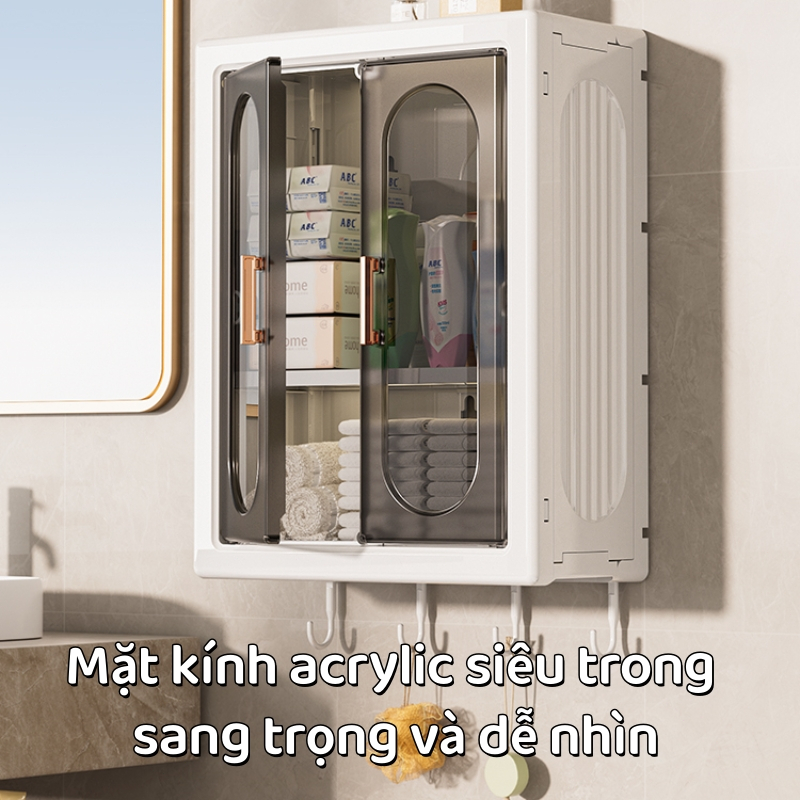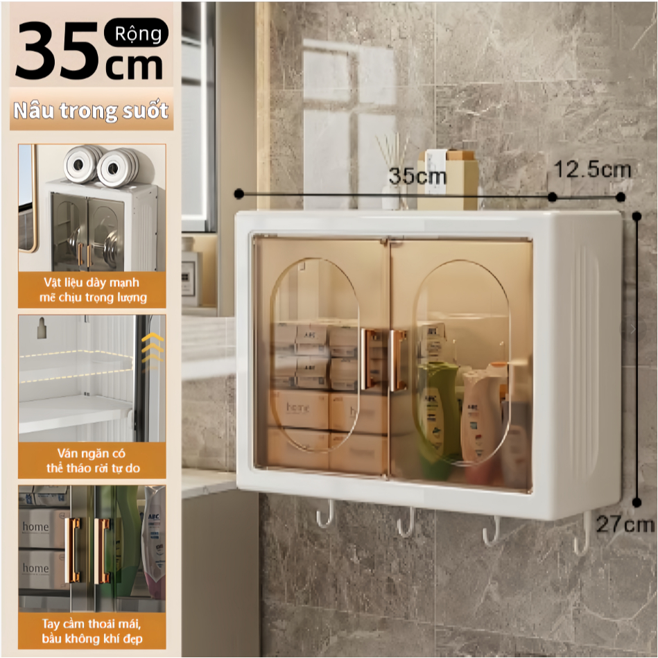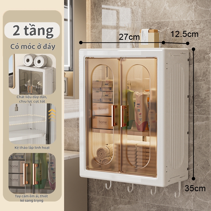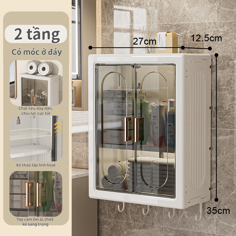 Kệ Tủ Treo Tường Nhà Tắm Đa Năng - Tủ Để Đồ Không Cần Khoan, Có Móc Treo Phía Dưới, Đựng Mỹ Phẩm, Đồ Vệ Sinh, Khăn Tắm