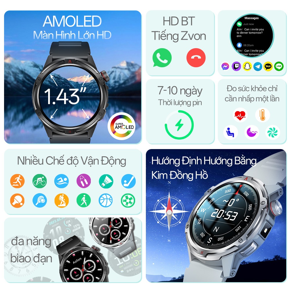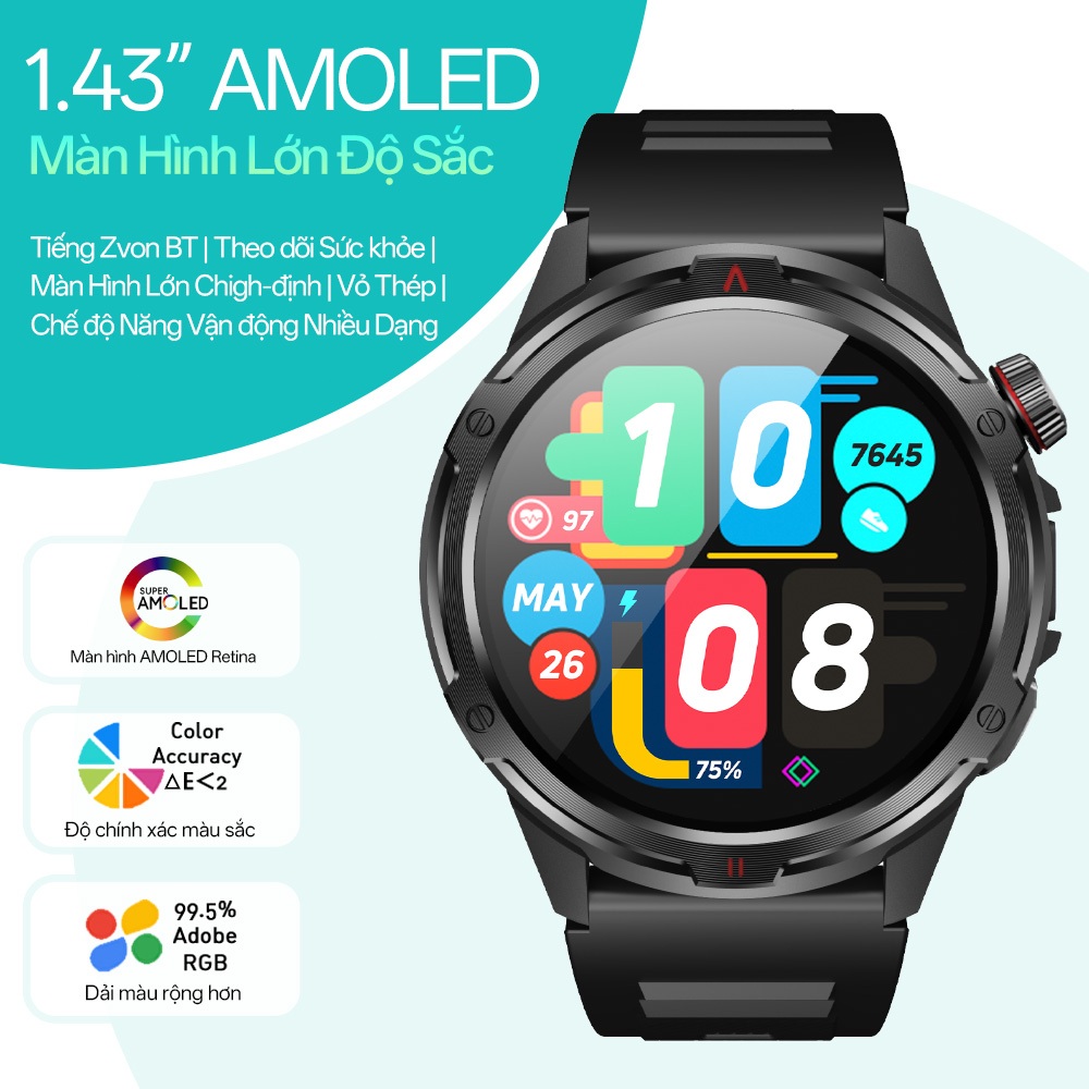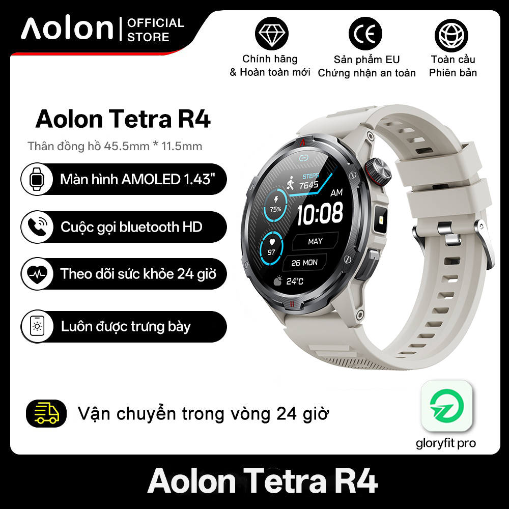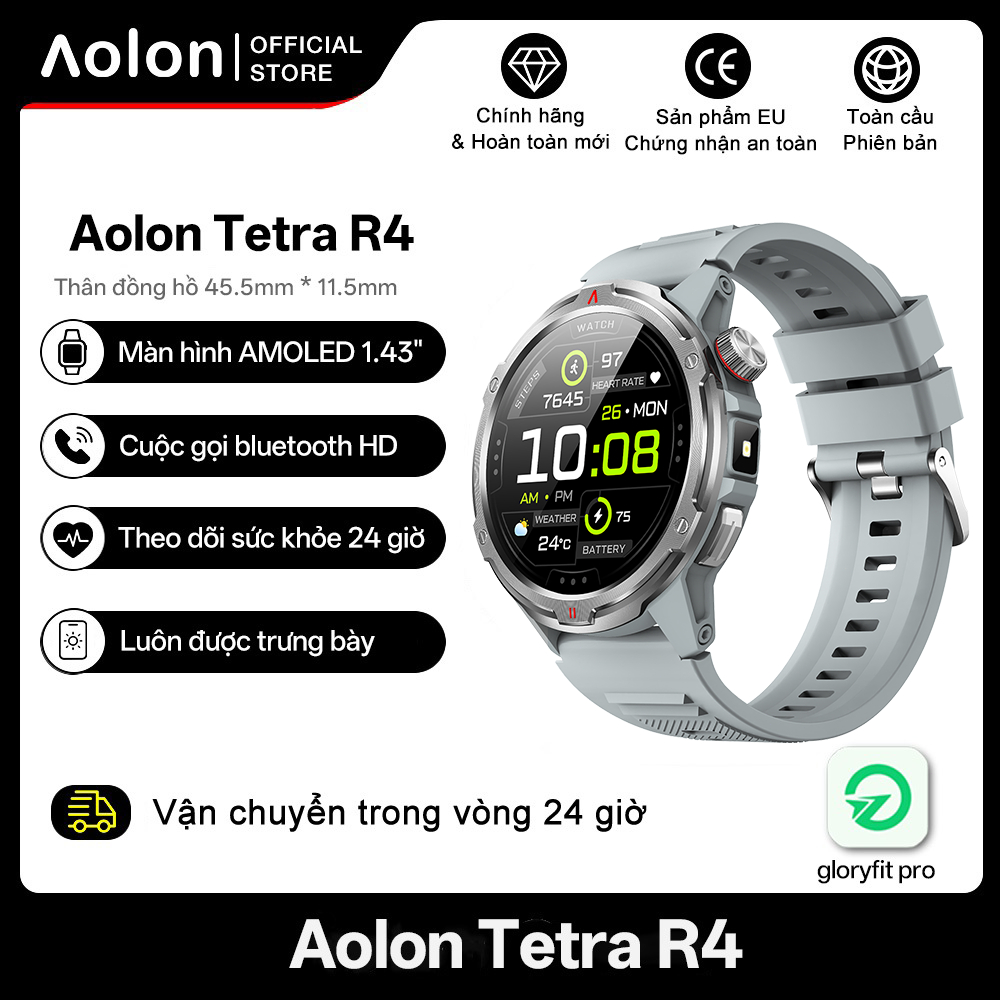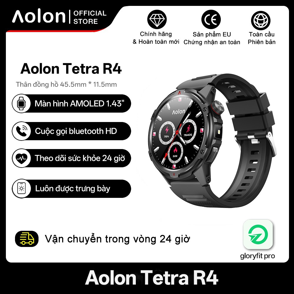 [Bán Chạy] Aolon Tetra R4 Đồng hồ thông minh xịn | GPS | AMOLED | Strava | Theo dõi sức khỏe | Chống nước 1ATM | La bàn
