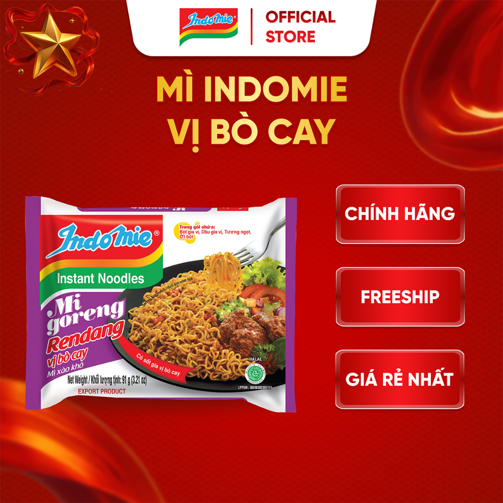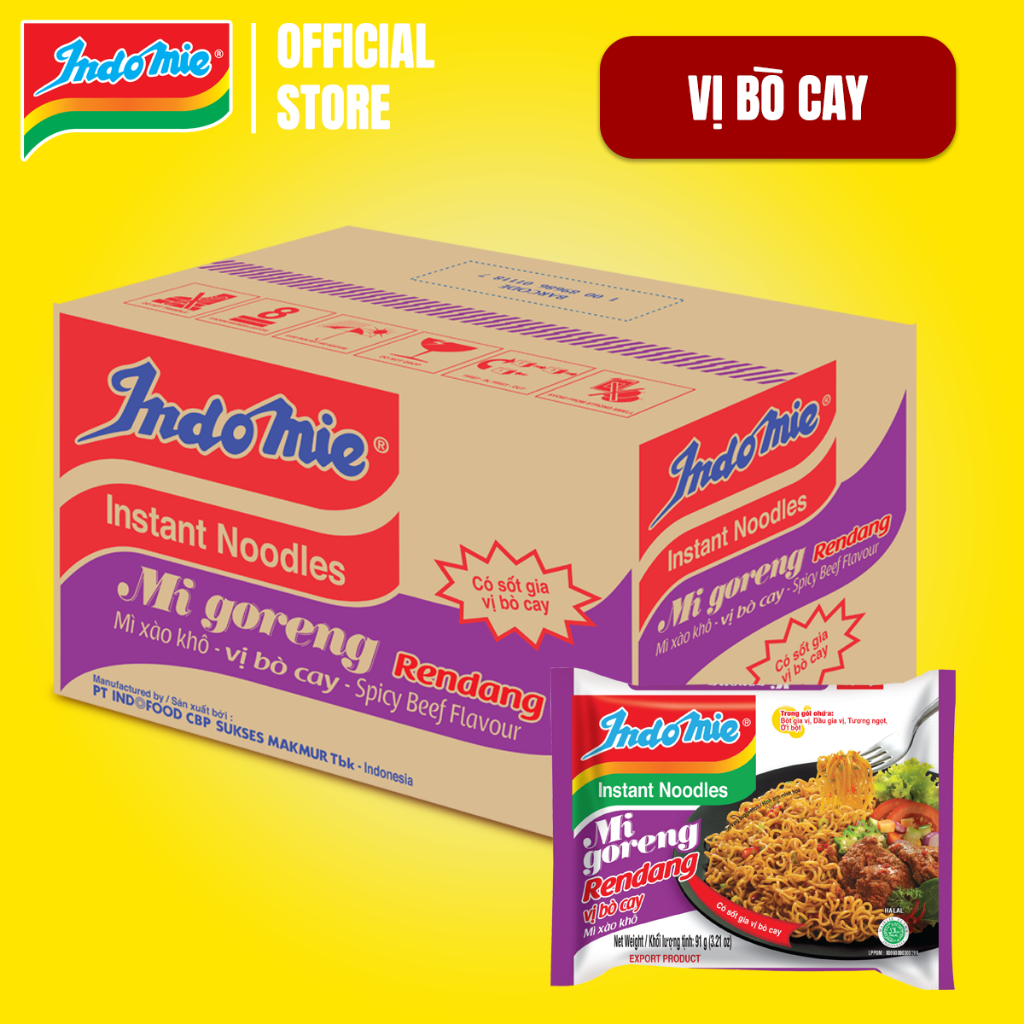 Mì Indomie vị Bò Cay, mì trộn cay nhẹ thơm vị bò đậm chất Indonesia 91g x thùng 40 gói