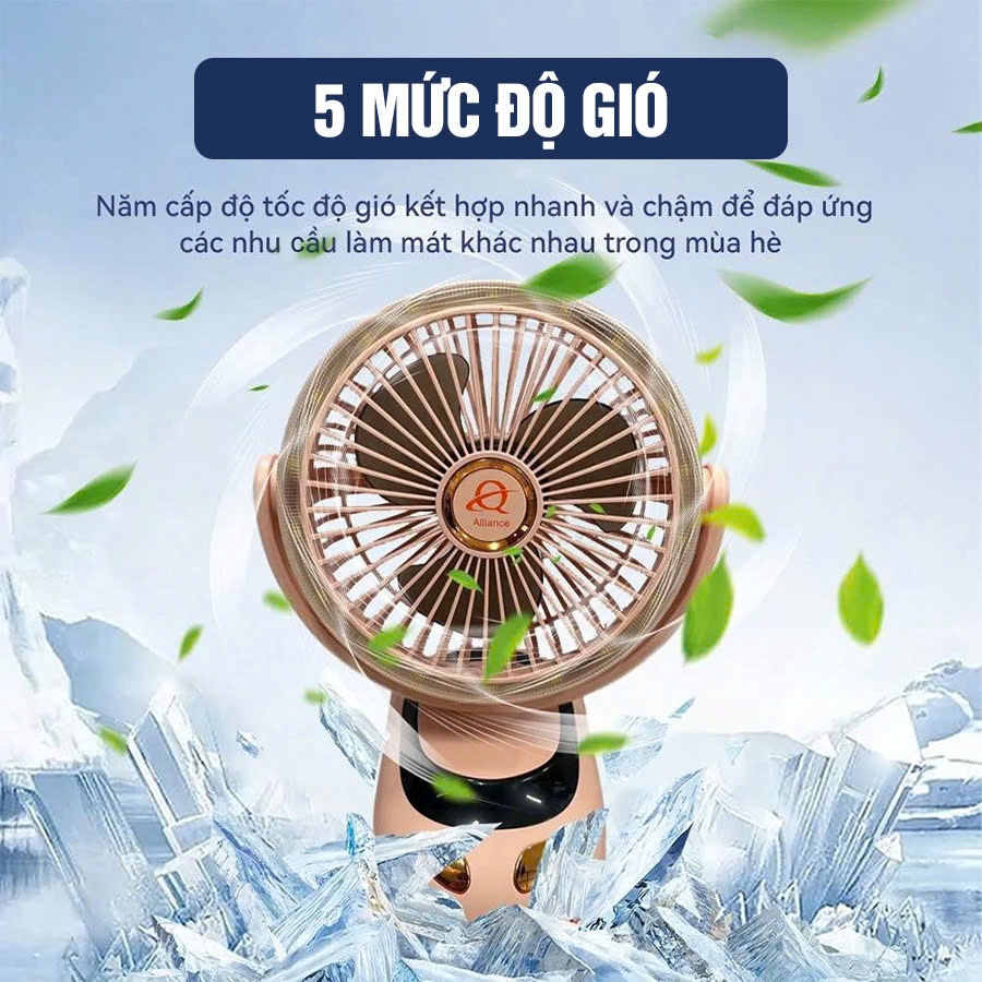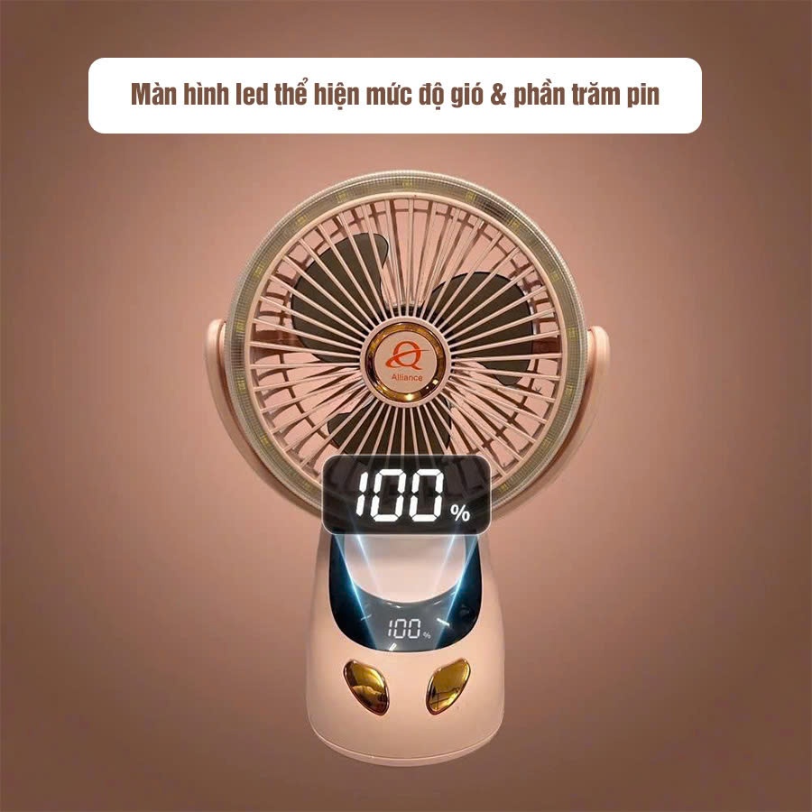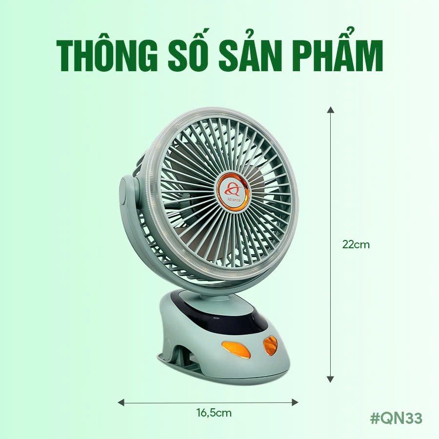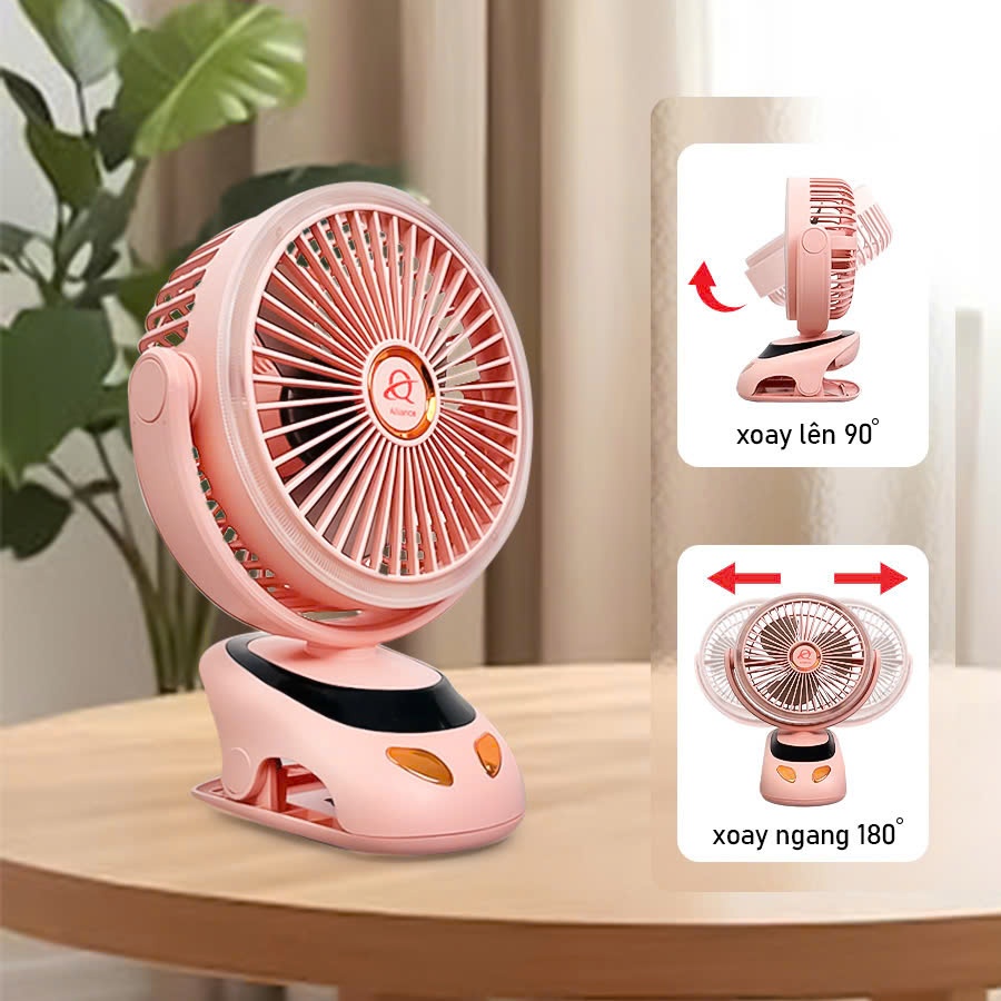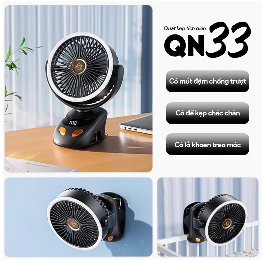 【 TỰ ĐỘNG XOAY 】Quạt Kẹp Tích Điện Mini QN33- 16cm , Dung Tích Pin 30.000mah , Xoay Tự Động 180 Độ , Có Đèn Và Hiển Pin