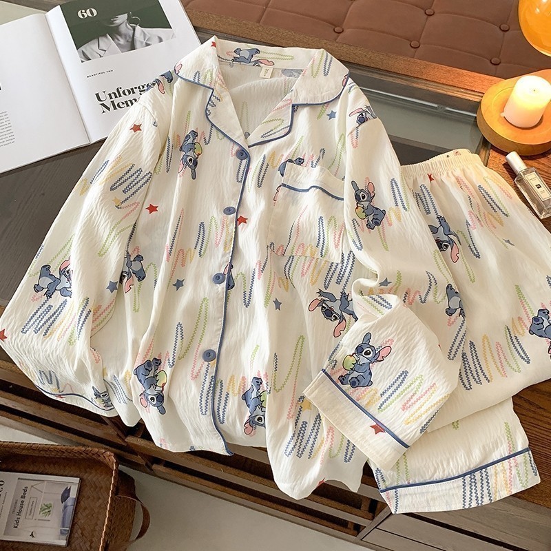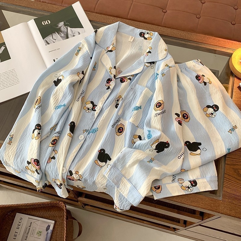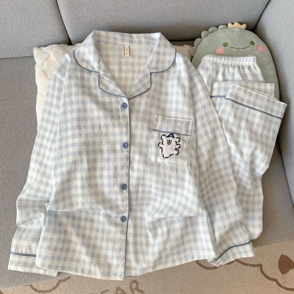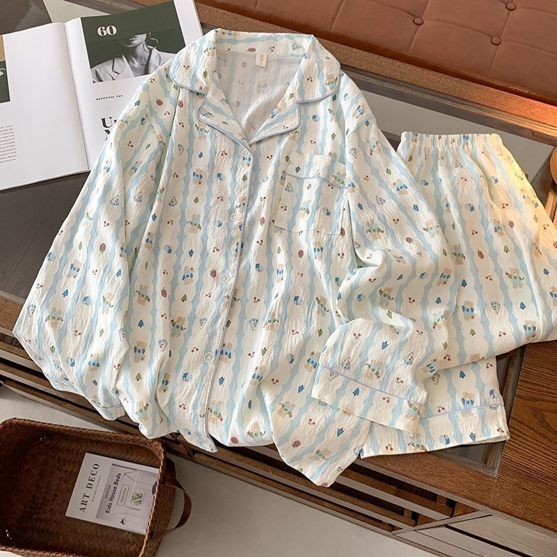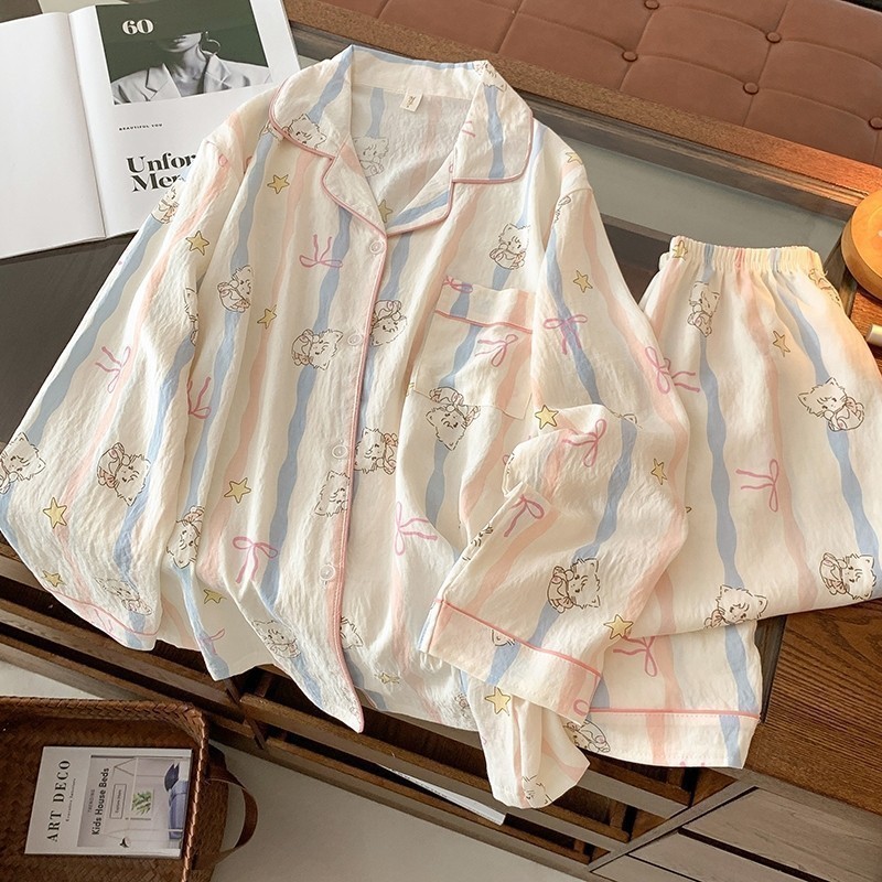 Đồ ngủ nữ Thời trang mềm mại Thoải mái thoáng khí dài tay pijama Kiểu Nhật Phong cách Bộ đồ ngủ 8945